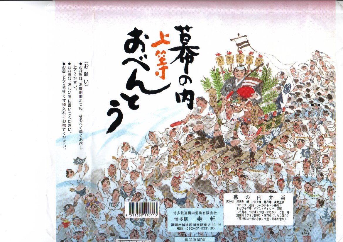 ふたには小倉祇園祭と博多どんたくの漫画が描かれ、小倉と博多の駅弁をアピールするはずが、巨大な食品表示ラベルで博多どんたくが隠されてしまった。2004年度のJR西日本の駅弁キャンペーン「駅弁の達人」の対象駅弁。2010年頃までの販売か。