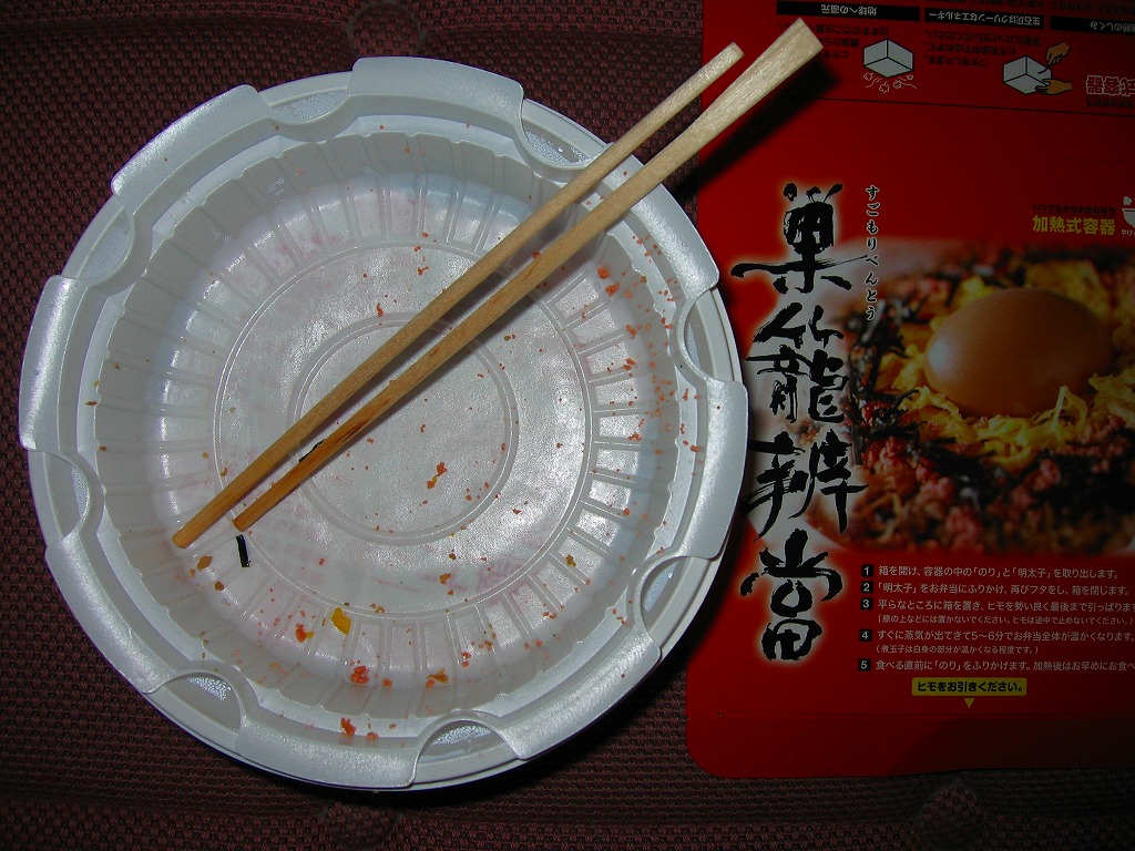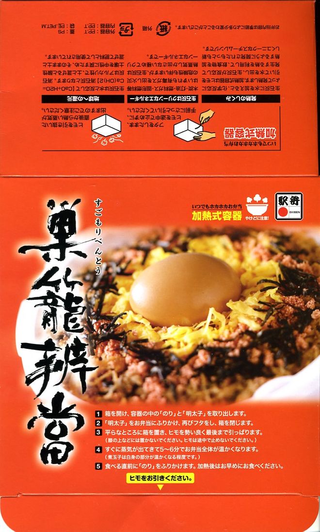 しかしこの駅弁の名前、本来は親鳥が卵を産み小鳥を育てる暖かいイメージを持つはずだが、この時代とこの世代(第二次ベビーブーム)においては悲しいかな、ニートやフリーターや派遣切りといったマイナスのイメージを先に連想してしまう。さらにこの駅弁、悪いことに部屋でもアツアツを食べられる加熱式である。2012年頃までの販売か。
