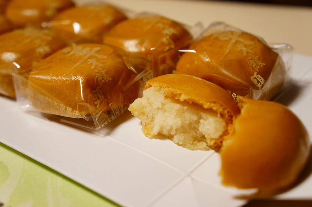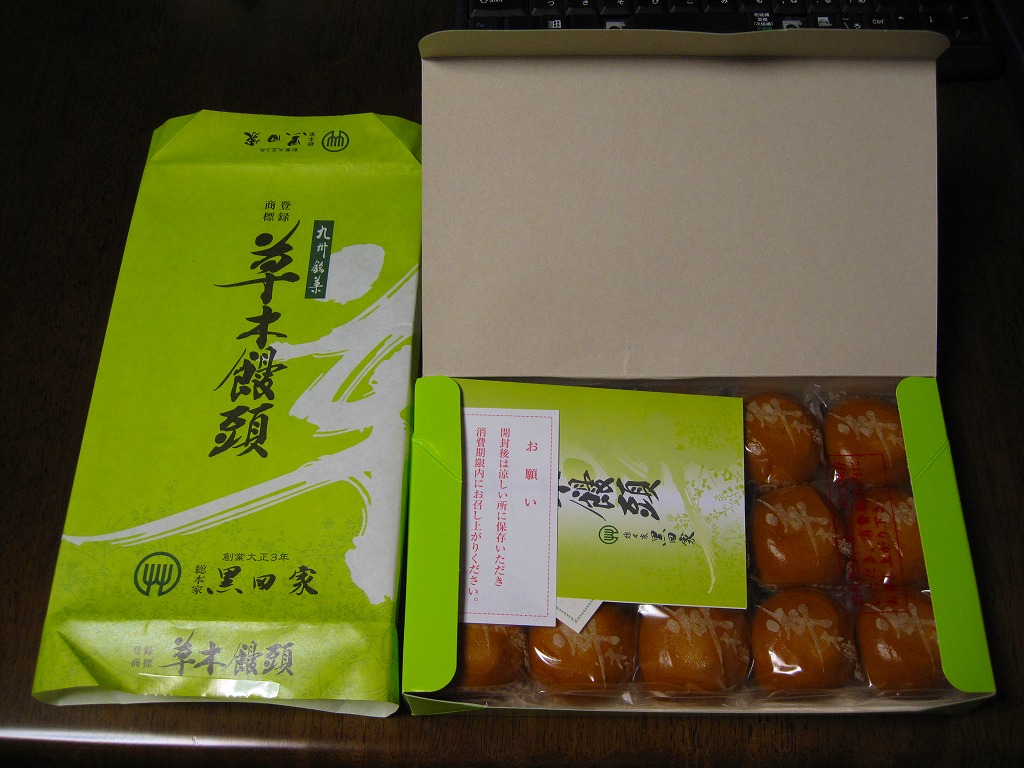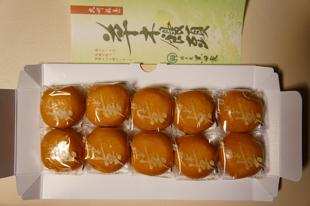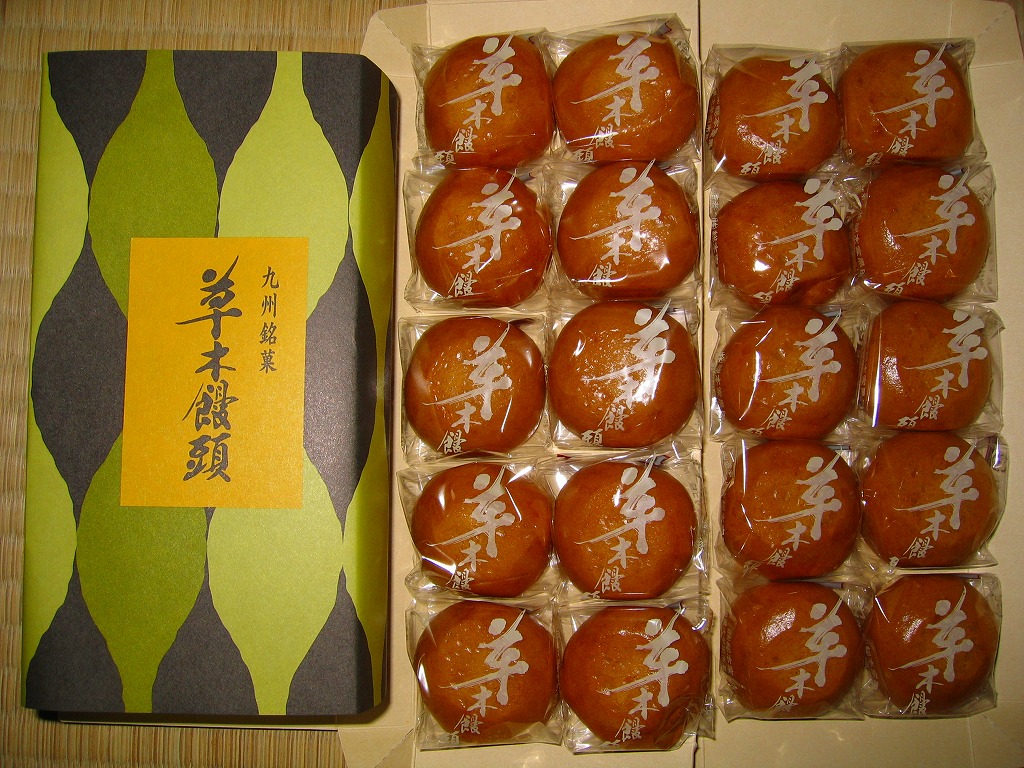 掛紙には九州銘菓と書いてあるが、大牟田限定の名物饅頭で、弾力的に柔らかい一口サイズの褐色薄皮白あん蒸しまんじゅう。1個40円換算で様々なパッケージがあり、写真のものは20個入りだから800円。個人的に日本一の饅頭だと思い、大牟田での知名度は抜群でも、大牟田以外での知名度がなく、博多のデパートと通信販売を除き大牟田でしか入手できなく、頑固に地域名物という殻に収まり続けるような。