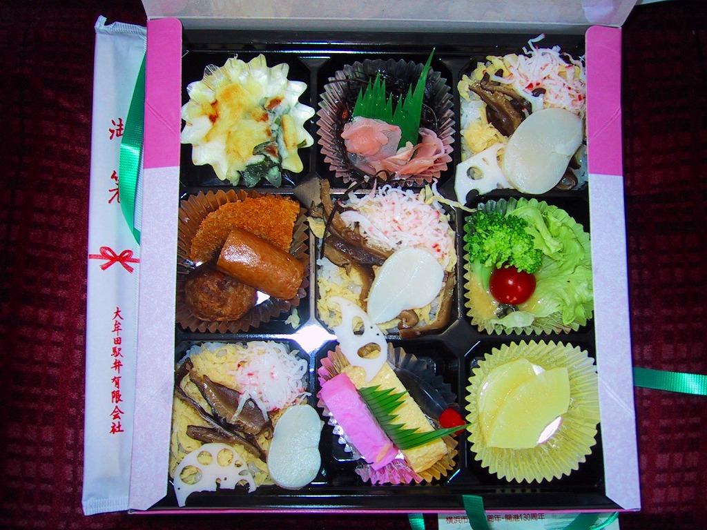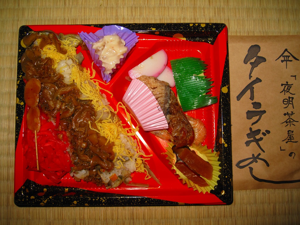 大牟田駅最後の普通駅弁。つまり「たいらぎ寿し」とこの幕の内弁当で、最終期の大牟田駅弁のすべてであった。市販の仕出し弁当向けボール紙箱を使うも、駅弁らしく掛紙をかける。中身は日の丸御飯に焼き魚、かまぼこ、玉子焼その他のおかずで、特徴のない標準的な幕の内弁当だった。駅弁屋が2007年12月16日に廃業したため、大牟田の駅弁はすべて終売となった。