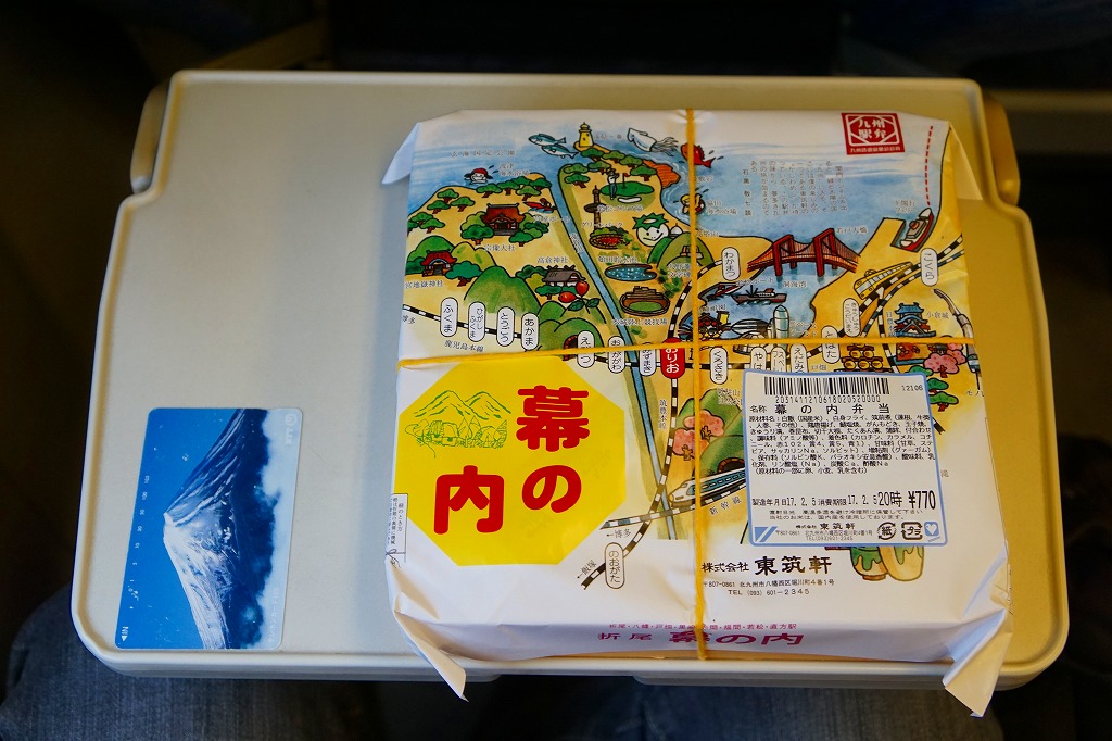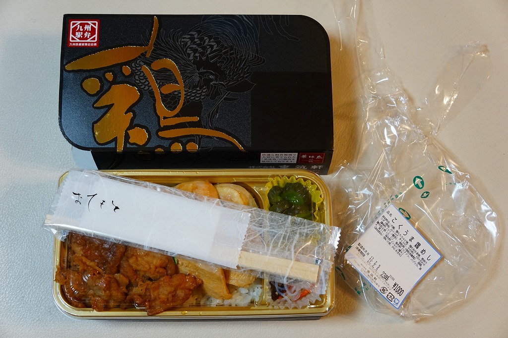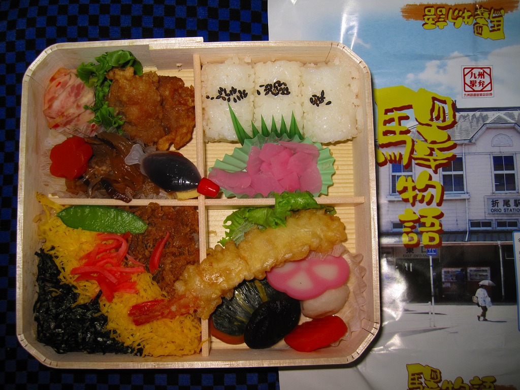 JR九州の駅弁キャンペーン「第6回九州の駅弁ランキング」の実施に合わせて、2009(平成21)年10月に発売。平たく四角い木製容器に経木でふたをして、折尾駅舎の写真を載せた掛紙で包む。中身はかしわめし、白御飯と桜漬、鶏唐揚とミートローフと牛肉しぐれ煮、カボチャやシイタケなどの煮物とエビフライで4区画。上等幕の内駅弁のような価格と容器と内容を持つものの、おかずの味は並等幕の内駅弁のレベルに思えた。