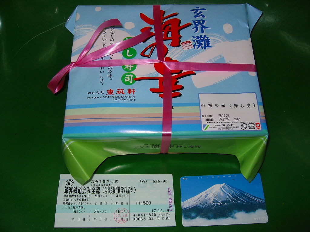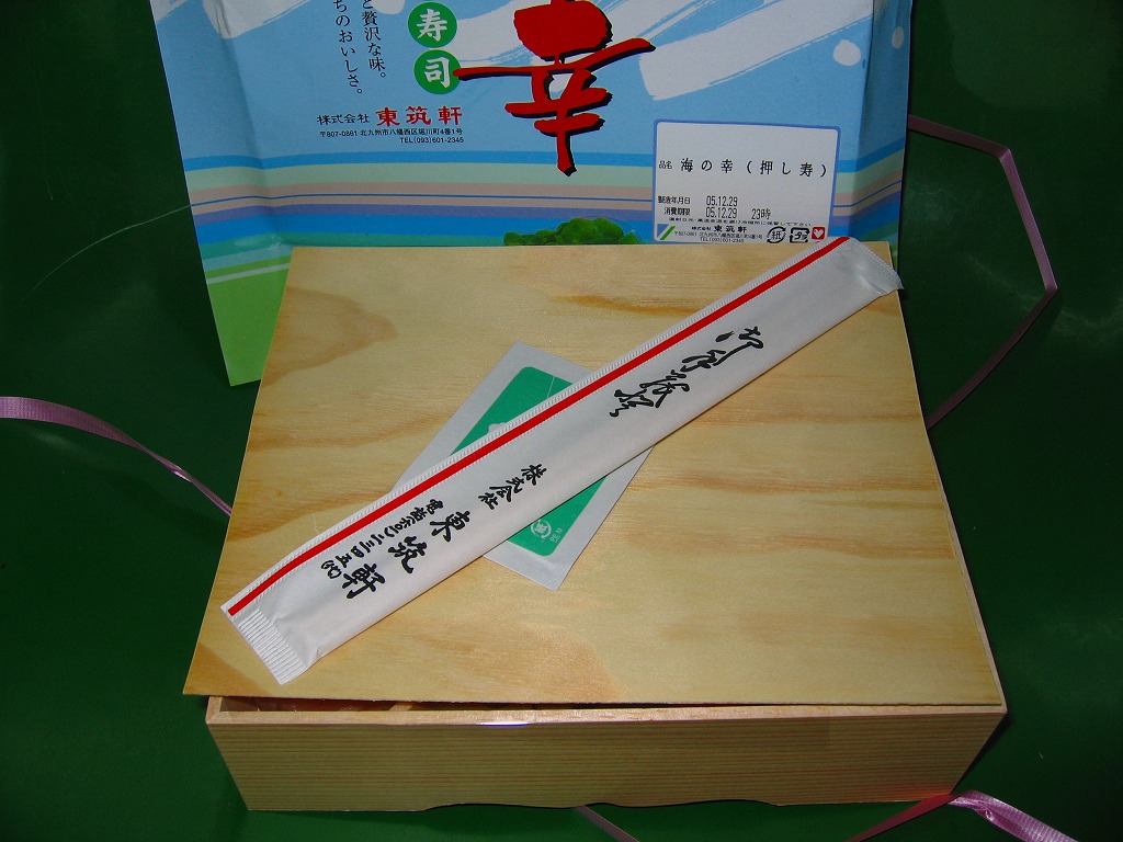 2005(平成17)年の秋に発売。予約により販売。大きな長方形の経木枠の容器に薄板のふたをして、割りばしとおしぼりを添えて駅弁の名前を書いた掛紙で包み、ビニールひもでしばる。中身は穴子寿司と海老寿司とかっぱ巻、鯖塩焼に有頭海老にイカ天ぷらに蒲鉾や煮物など。