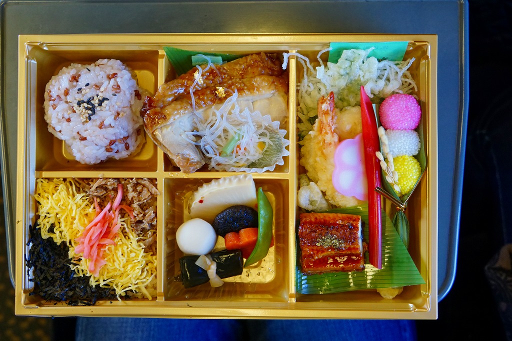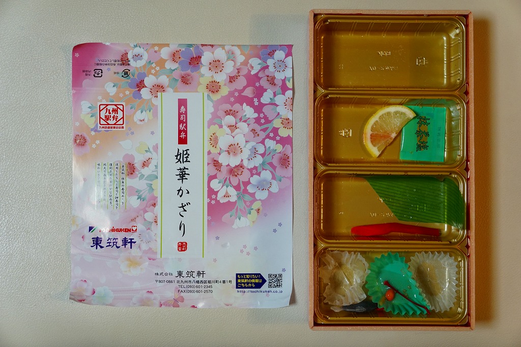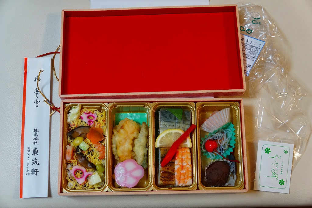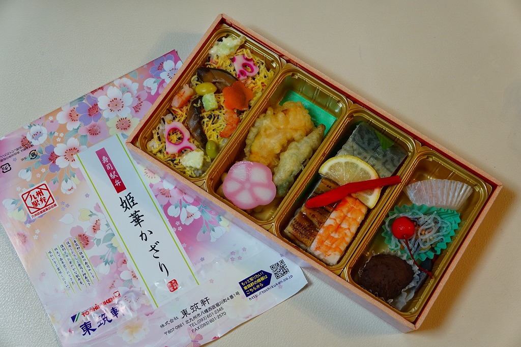 2016(平成28)年10月1日に発売、同日開始のJR九州の駅弁キャンペーン「第12回九州駅弁グランプリ」にエントリー。サクラ柄の大きな折箱にサクラ色の掛紙を巻き、4区画の中身は左からちらしずし、オクラ、カボチャ、シイタケ、レンコンの天ぷら、サバとアナゴとエビの押し寿司、おはぎと春雨サラダ。中身も華やか、値段はもっと華やか。話題になることなく、収穫報告もほぼ聞かれず、キャンペーンの終了とともに半年間ほどで売り止めた模様。