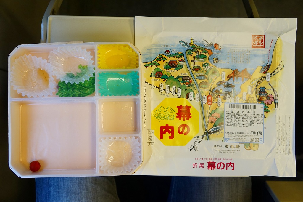 内容も見栄えも雰囲気も購入方法も、特別な日の仕出し弁当という感じ。駅弁のかしわめしのイメージからだいぶ離れるが、紙のチラシや公式サイトを見ると、そういう性格が感じ取れる。駅の規模や性格の割に立派な駅弁売店も、そんな役割を持っているのかも。現在は販売されていない模様。