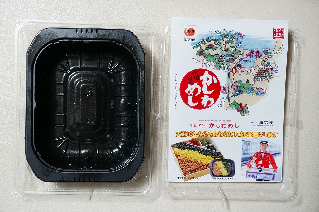 食べれば折尾駅弁の味そのもの。商品が実現してしまえば、折尾駅弁のかしわめしの具や飯はもともと冷凍向けだったとも思えるくらい、解凍の鶏飯も鶏肉も現地の風味がある。近隣の駅弁屋とは異なり駅弁の輸送版版や実演販売をあまり行わず、小倉〜折尾〜博多のエリアでしか食べられなかった味が、年に一週の船橋東武を待たず東京でも一年中取り寄せられるようになったのは、革命的だと思う。