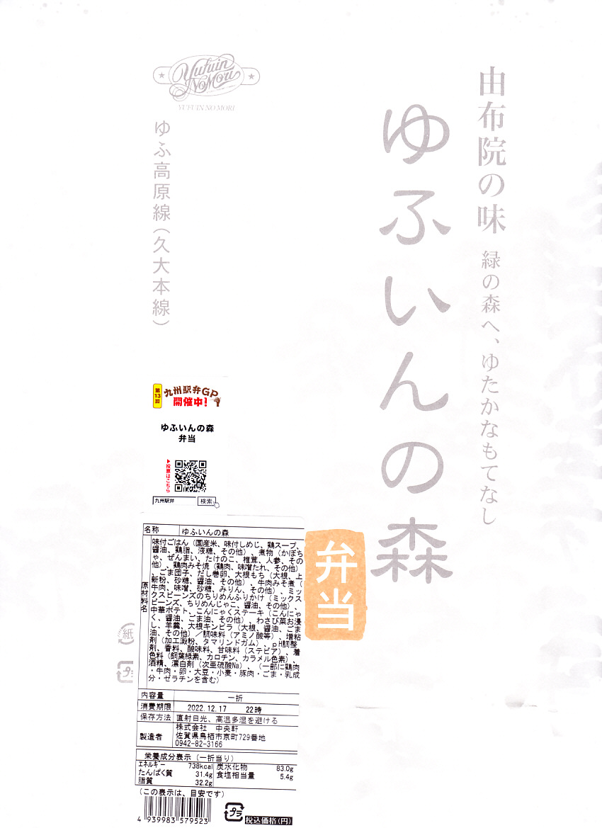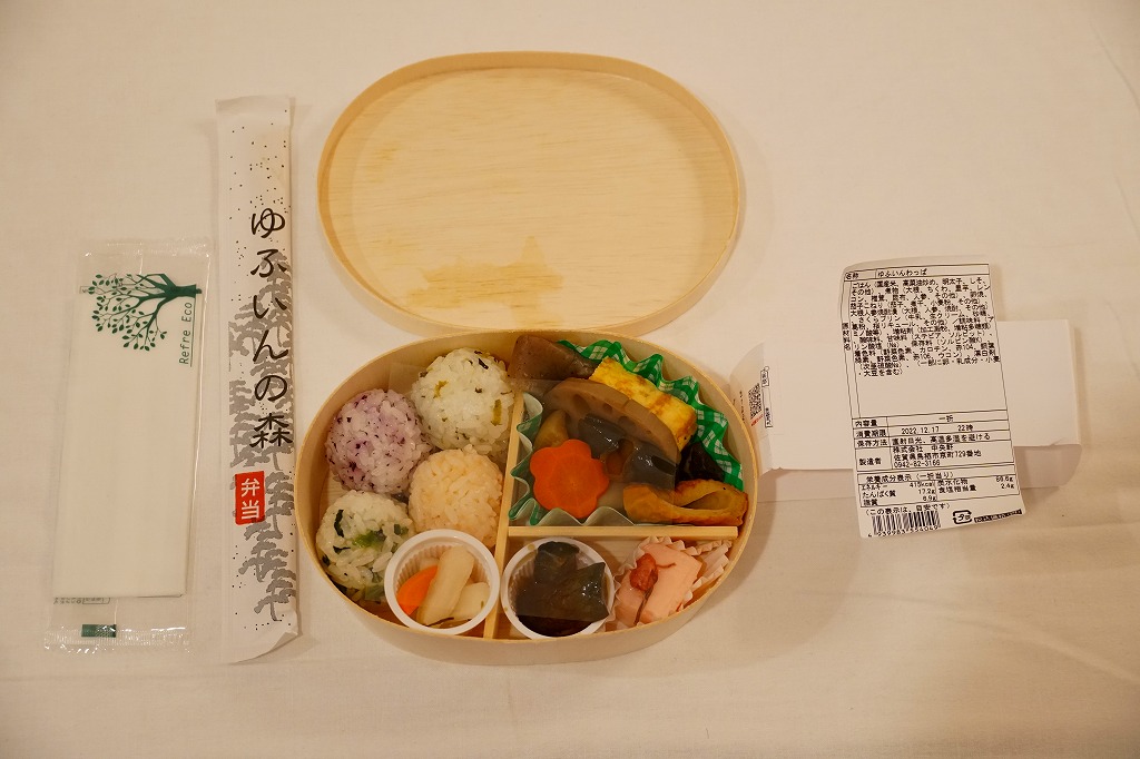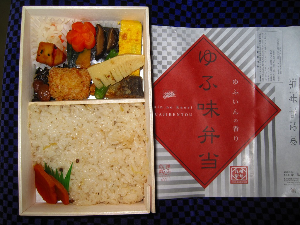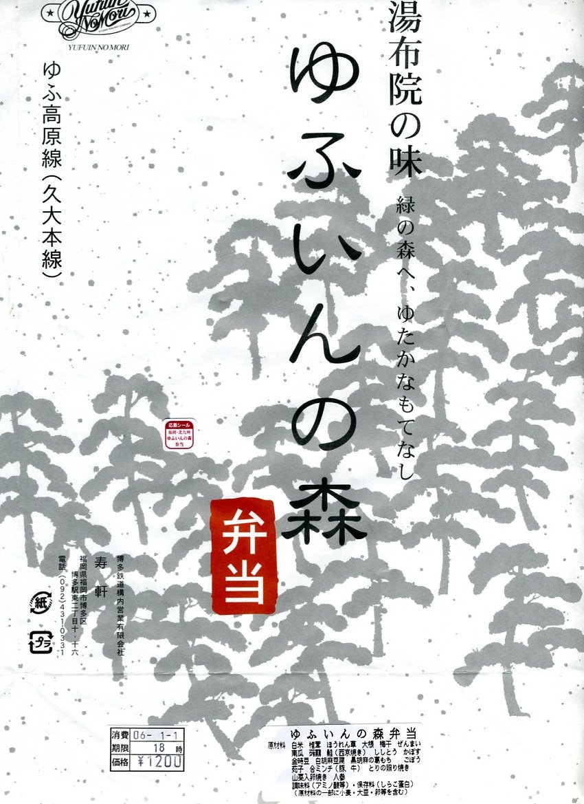 博多駅と由布院駅や大分駅を結ぶ特急列車「ゆふいんの森」のビュッフェで販売された車内限定弁当。経木枠の長方形の容器に木目柄のボール紙でふたをして、弁当の名前を大きく書いた掛紙で包む。中身は山椒御飯におからコロッケ、サバ竜田揚、タケノコやカボチャなどの煮物、玉子焼、大根なますなど。分量と刺激を抑えてスッキリした内容と風味を持つ。この弁当は「弁当製作会社の都合により」、つまり調製元の撤退により、購入日の翌日である2011年1月1日から販売が見合わされている。