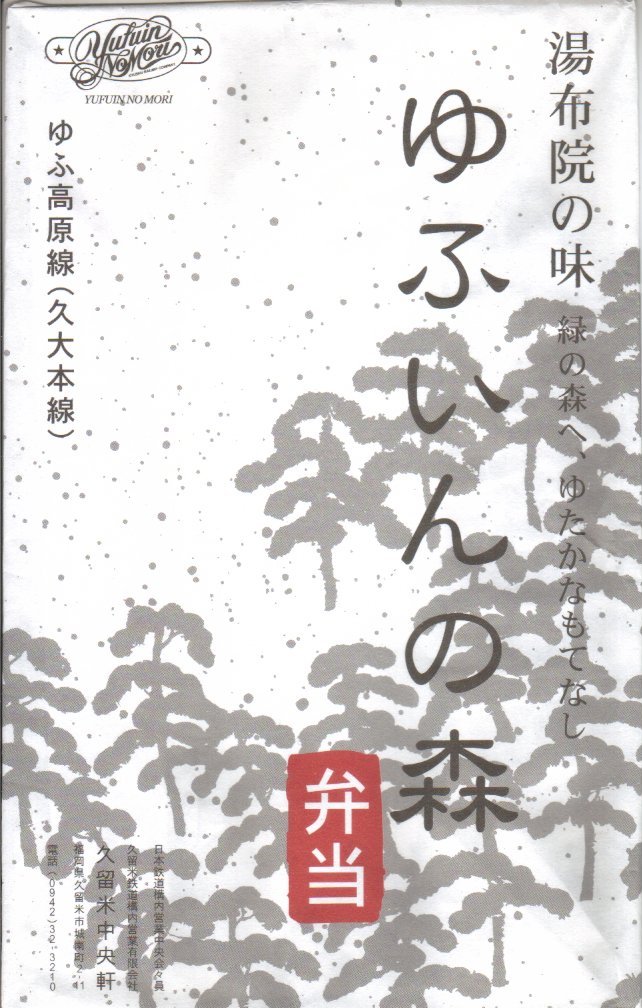2001(平成13)年11月に特急「ゆふいんの森」車内で発売。当時のゆふいん料理研究会、特急「ゆふいんの森」車内で販売やサービスを担当する客室乗務員、久留米駅の駅弁屋の3者が共同で開発した、この観光列車のためのお弁当。当時の調製元が2003年12月に廃業したため博多駅の駅弁屋が引き継ぎ、その調製元も2010年12月に廃業したため終売、2011年10月までに鳥栖駅の駅弁屋が引き継いだ。中身を斜めに仕切った、大きな長方形の折箱を、松林と弁当名を描いた白い包装紙で包む姿は、発売時から変わらず受け継がれる。