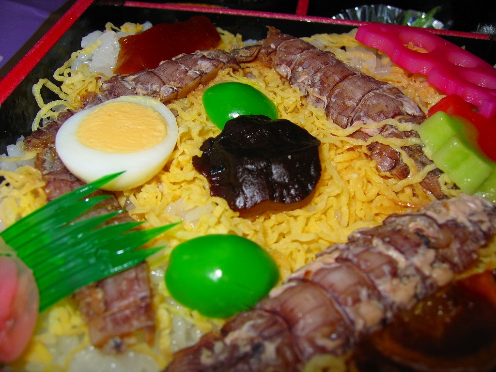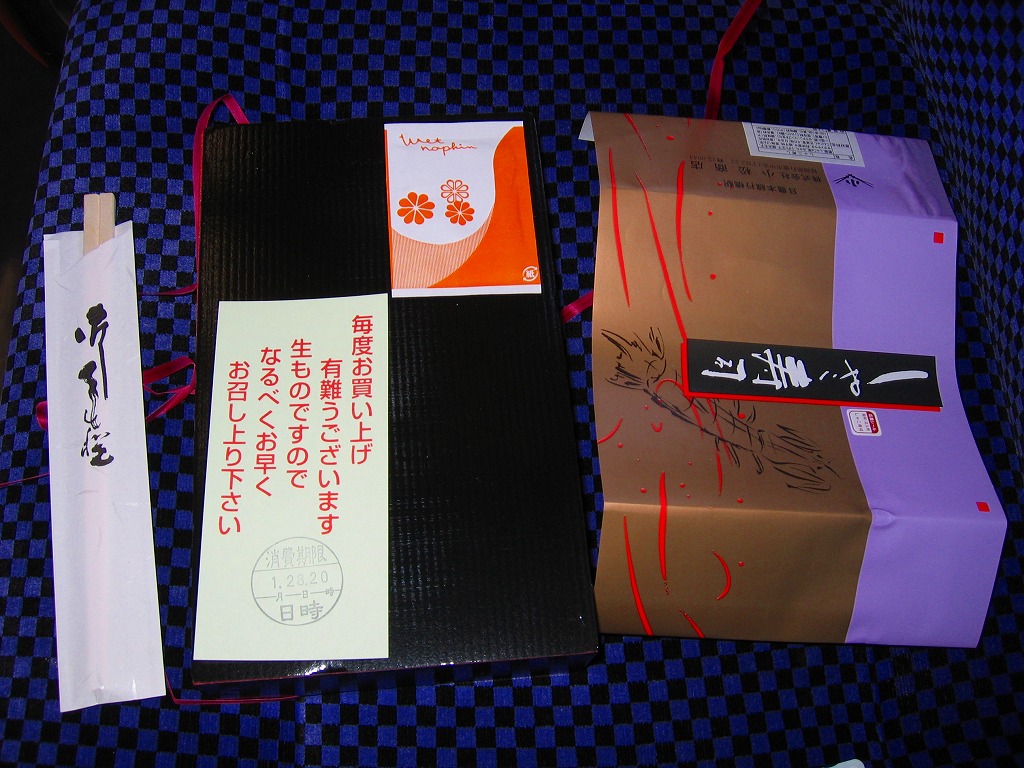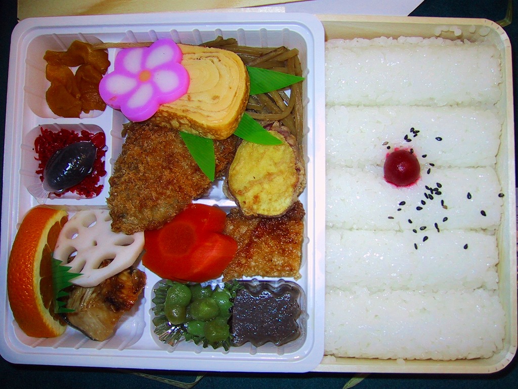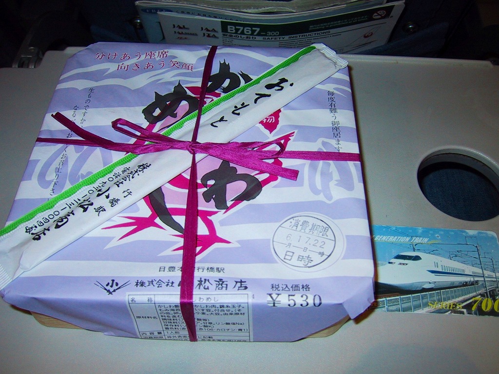 1990(平成2)年の福岡国体に合わせて発売。赤い発泡材を黒塗りした、一見高級感のある容器を使う。中身は正方形の御飯の上に錦糸卵その他とともに菱形に配置したしゃこを載せ、残る部分に付合せと、季節毎に変えるというデザートを詰めたもの。味は見た目の範囲で品質の良さが出ており、メインのしゃこの見栄えや風味は良好。