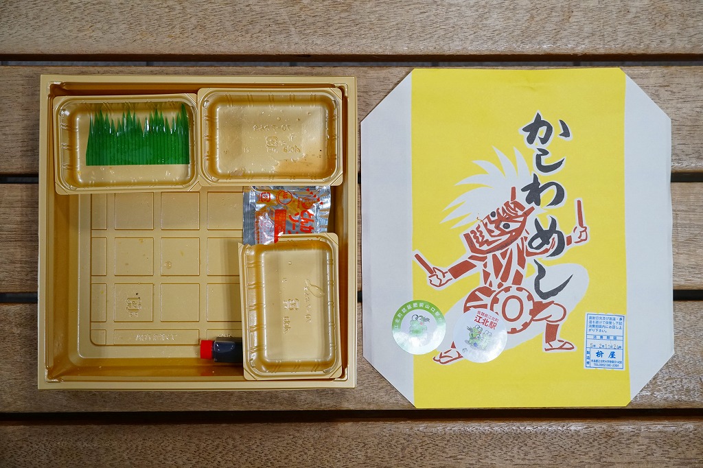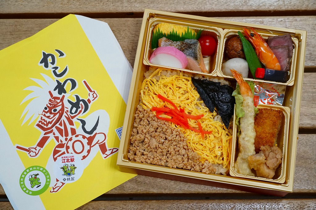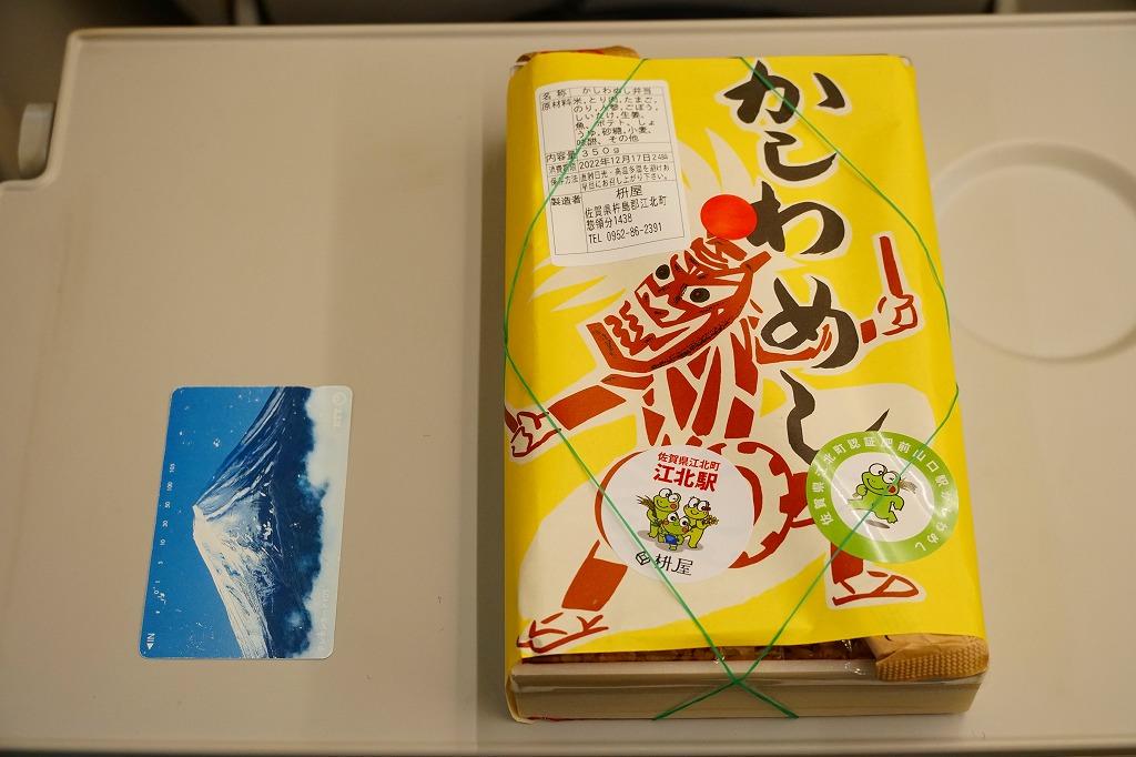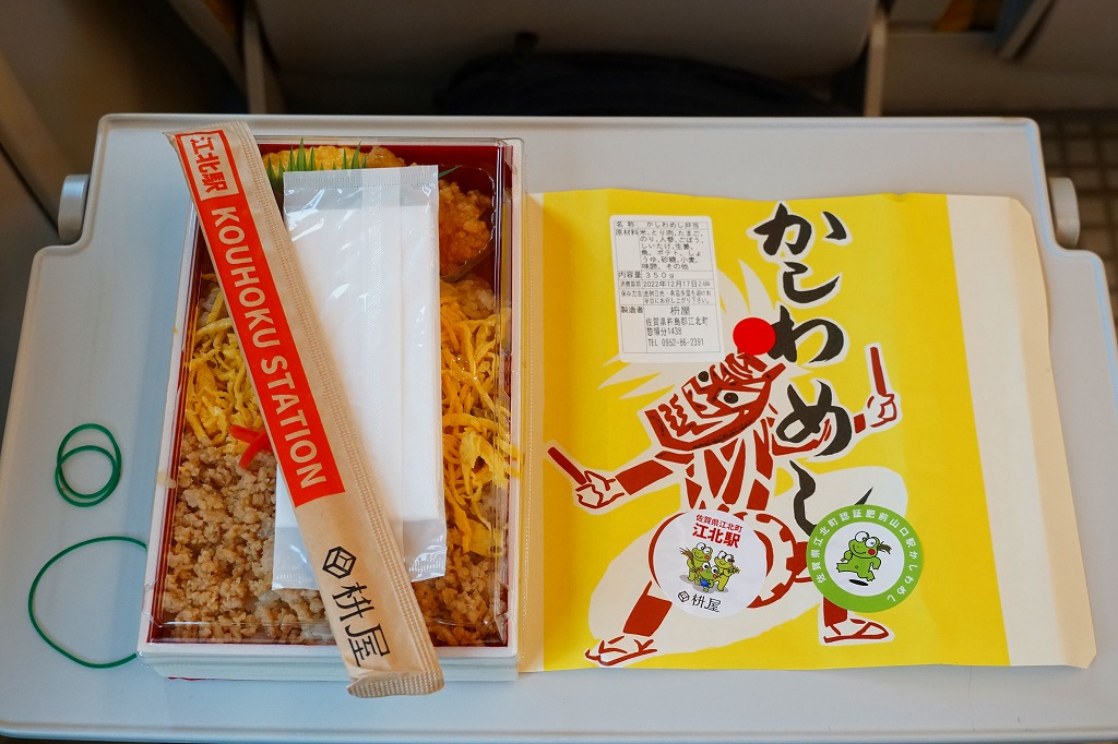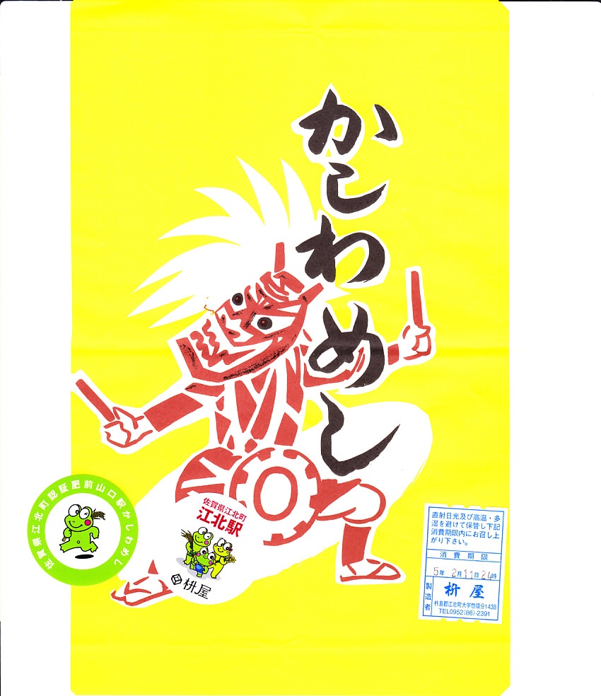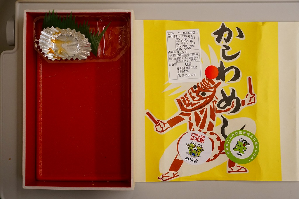 2022(令和4)年5月に、当時の肥前山口駅北口でオープンしたコンテナショップ「エキ・キタ」で発売。かつて肥前山口駅で売られた駅弁「かしわめし」を、地元の商工会と飲食店組合と町民8名を含む15名で2016年11月に発足した江北町駅弁研究会が復刻し、江北市街の料理店「枡屋」の調製により2017年6月からイベント時に販売していた弁当が、駅前の常設店舗で売られるようになった。