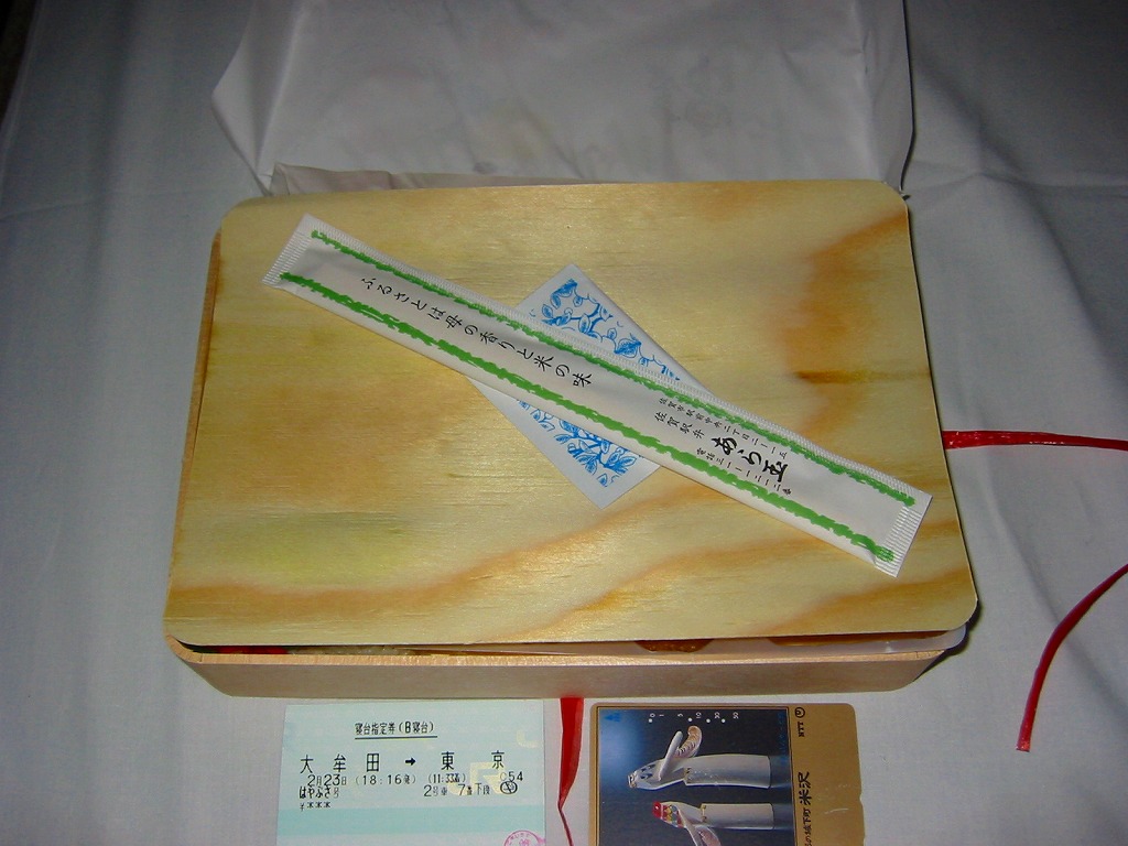 2006年3月放送のテレビ番組によると、器の柄は5種類あり、専用の紙箱が50円で売られているそうな。2006年5月には容器の終了で終売、翌6月に新しい容器と紙箱を使い1,260円へ値上げ。2014年4月の消費税率改定で1,300円。2017年時点でも、前日までの予約により購入できる模様。2022年時点でJTB時刻表に掲載があるが、現地に見本も掲示も現物も無く、もう売り止めたのかもしれない。