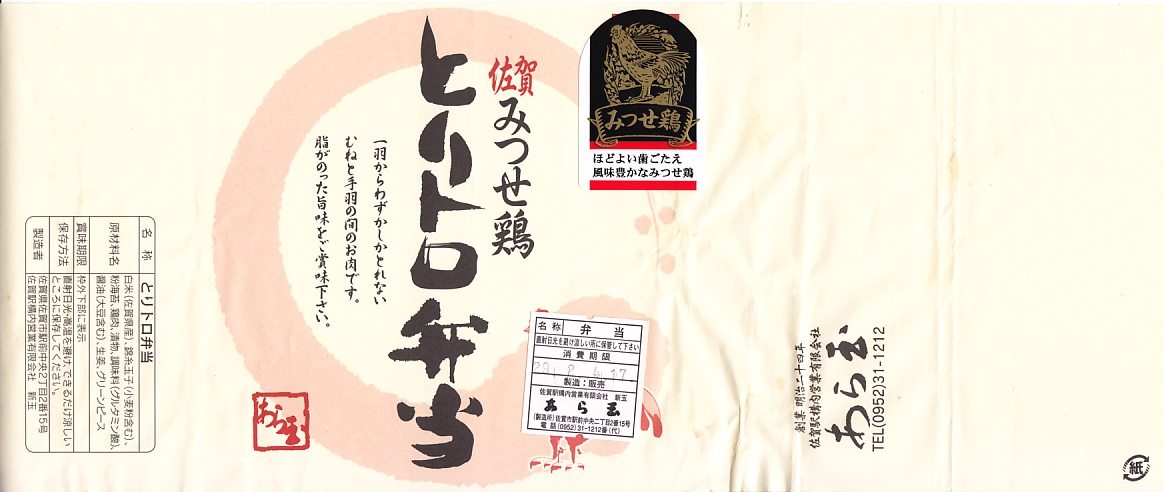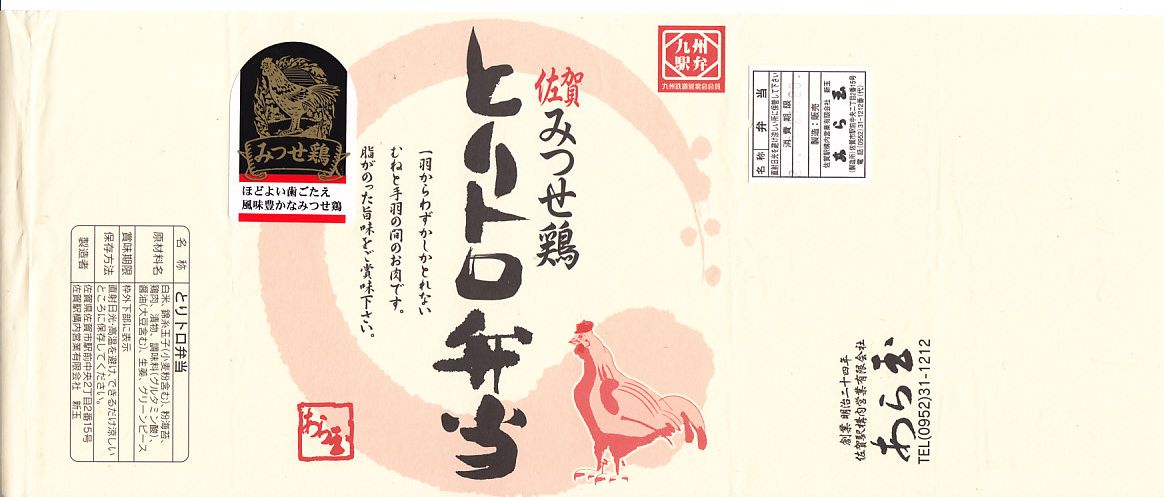 2006(平成18)年10月のJR九州の駅弁キャンペーン「第3回九州の駅弁ランキング」の開催を前に、同年8月に発売。スーパーの惣菜のようなプラ製容器に収まる中身は、茶飯の上を錦糸卵と「みつせ鶏」手羽胸肉の照焼で覆い、グリーンピース、ししとう、シイタケ、かまぼこ、紅生姜で彩り、タクアンと七味唐辛子を添えるもの。見た目も食べても脂肪分が感じられなく、肉の密度が高いのに固いわけではない独特の鶏のぶつ切りが印象的。価格は2006年の発売時で730円、2014年4月の消費税率改定で760円。2022年時点でJTB時刻表に掲載があるが、佐賀駅の店舗になく、2019年で売り止めたのかもしれない。