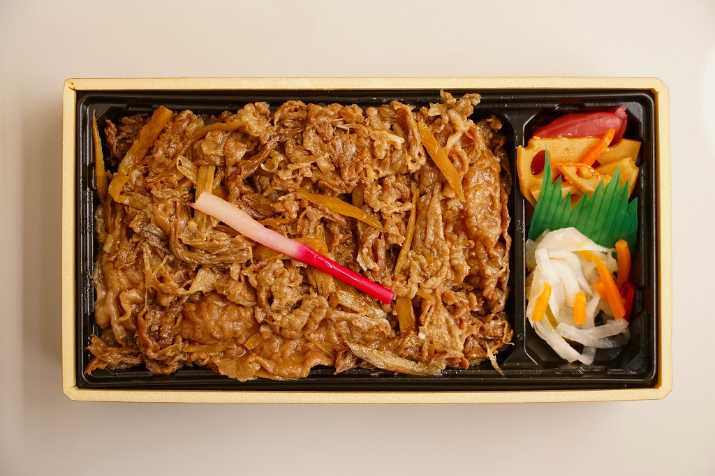 武雄温泉駅の駅弁「佐賀牛すき焼き弁当」を、京王百貨店の駅弁大会で購入したもの。掛紙がすべての実演販売商品で共通の「佐賀牛弁当」となっている。白飯を牛すき焼きで覆い、レンコンきんぴらと漬物と酢の物を添える内容は、上記の現地版と同じ。いつも催事場でも常温の牛肉駅弁として圧倒的なうまさを持っていたが、今回はなぜか牛すき焼き肉の味が平凡であり、赤身の柔らかさも脂の豊かさも香りの良さも感じられなかった。これもまさかのコロナ禍か。