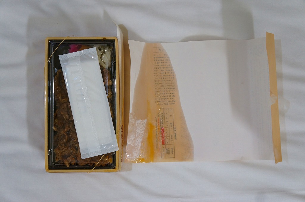 見た目も食べた感じも、味付けが淡く噛み切りにくいローストビーフという印象。まったく個人的な意見だが、通常版のすき焼きのほうがはるかに美味で、今回のこの催事場で三大百貨店対決その他で多量に出ていた他の牛肉駅弁に勝てる気がしなかった。この京王百貨店駅弁大会以外で売られたかどうかは分からない。