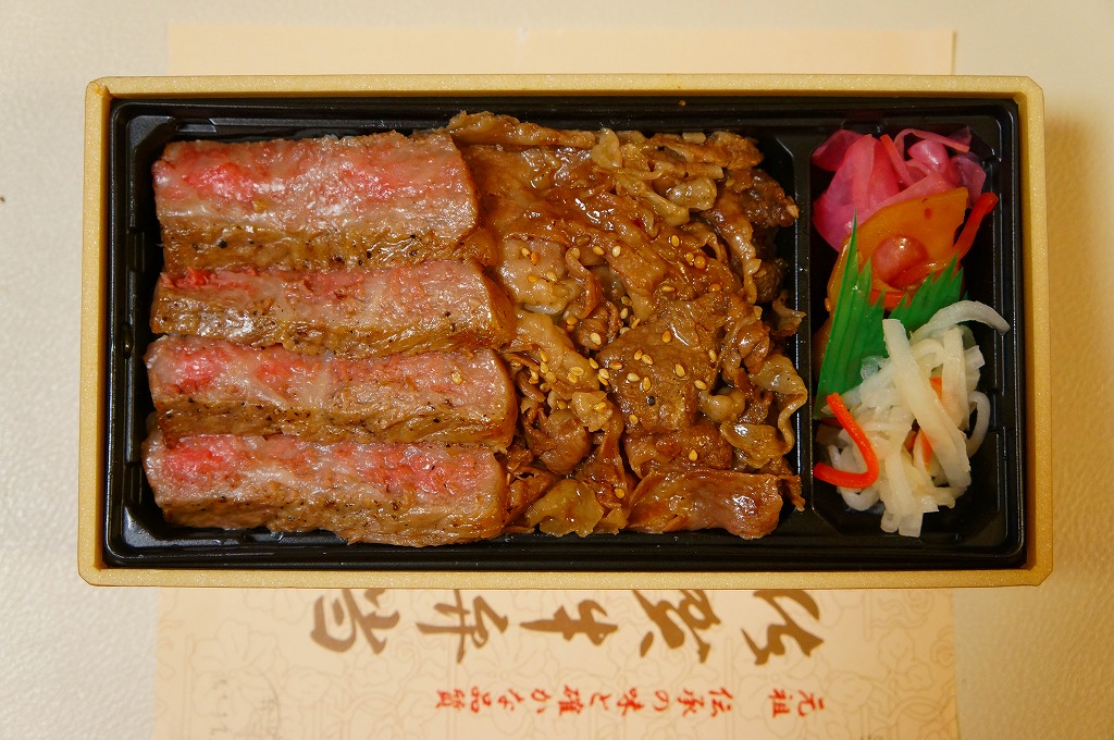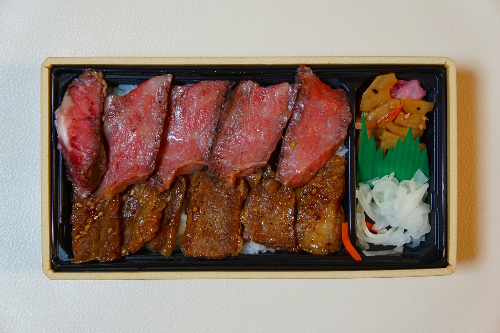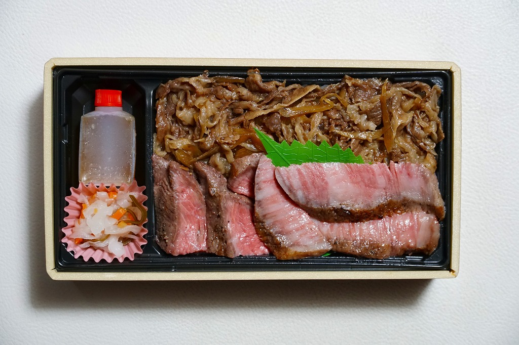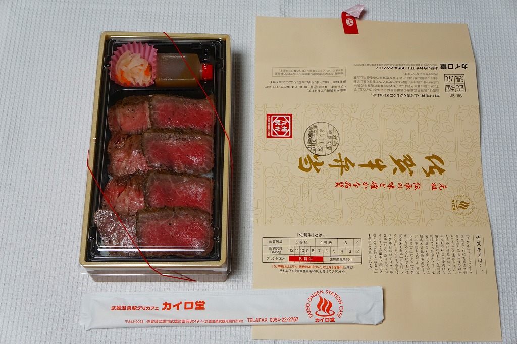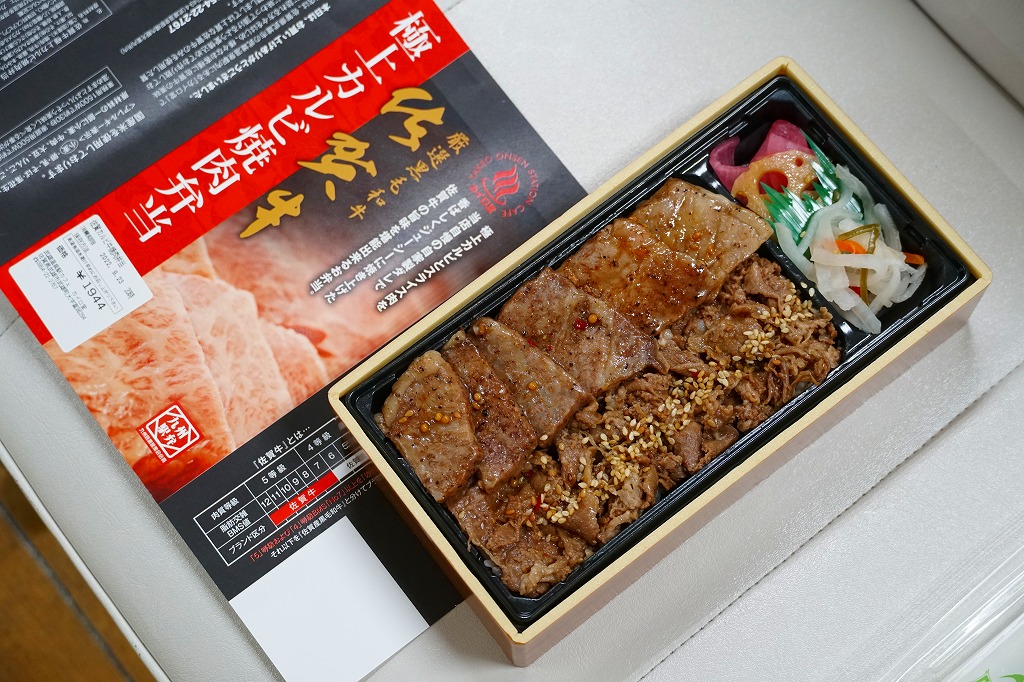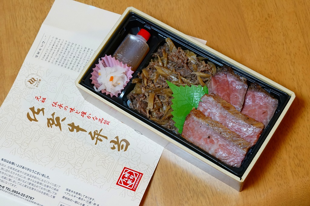 現地では「佐賀牛ステーキ&焼肉弁当」の名で注文販売される模様。価格は2014年の購入時で2,100円、2017年時点で2,160円、2020年時点で2,300円+税=2,484円。