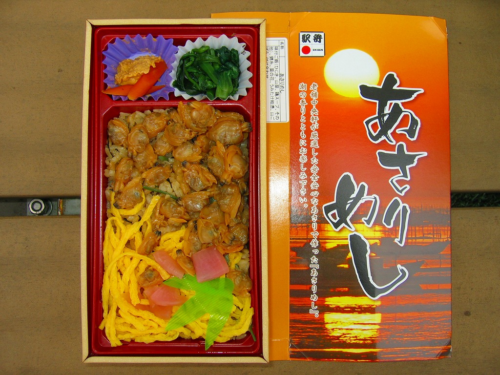 鳥栖駅ではなかなか出会えない。アサリが主題の駅弁はかつて熊本駅にもあったが、今では関東地方を除くとここだけかもしれない。価格は2008年時点で850円、2014年4月の消費税率改定で880円、2023年時点で900円、2024年12月から980円。