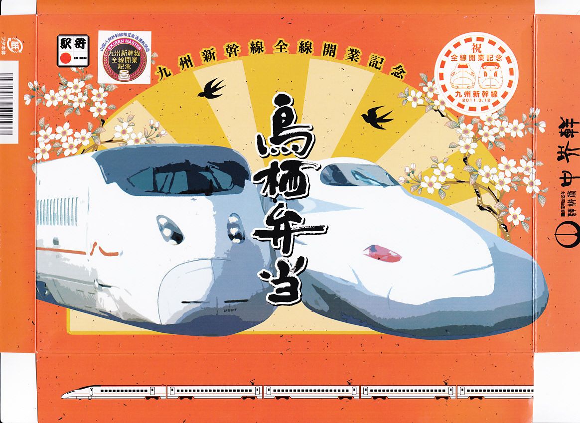 九州新幹線全線開業記念駅弁22種のひとつとして、2011(平成23)年1月1日から8月31日まで販売。九州新幹線を走るN700系電車と800系電車を描いたボール紙の箱を使用、中身はかしわめしの周りを左下から時計回りに、大根なます、アサリ五目煮、牛肉味噌焼と昆布巻とゴマ蓮根、焼鮭と煮エビと山ごぼう、焼麦と玉子焼とかまぼこ、海茸粕漬、金山寺味噌のおかずで囲むもの。