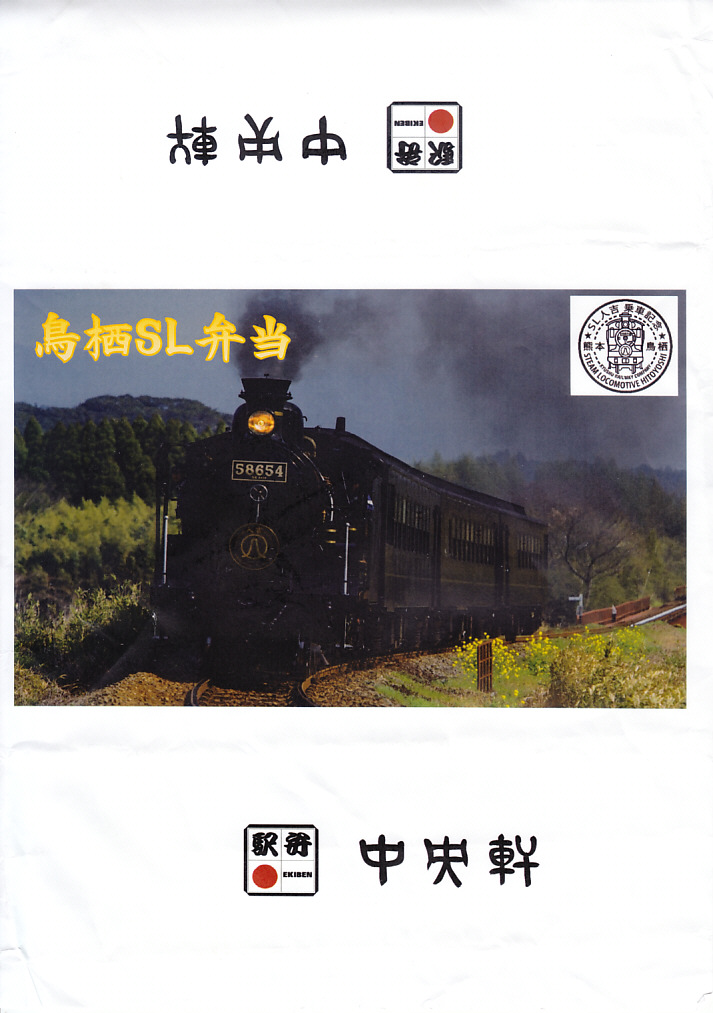 2021(令和3)年5月1日のSL列車「SL人吉」の運転開始に合わせて、鳥栖駅で発売。SLの運転日のみの販売。掛紙には鹿児島本線でなく肥薩線を走るSL列車の写真が使われる。竹皮編み容器に見える、薄い竹皮を貼り付けた紙箱に収めた中身は、チキン南蛮の太巻き、れんこん、きんぴらごぼう、玉子焼、焼さば、焼麦(しゃおまい)3個、ウインナー、串カツなど。蒸気機関車のサイドビューを、食材でなんとか表現したように見えなくもない、肉と油の味がするお弁当。