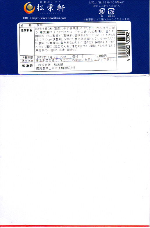 なお、2013年2月の訪問では、この商品の取り扱いがなかったため、今は駅では売られていないのではと思う。