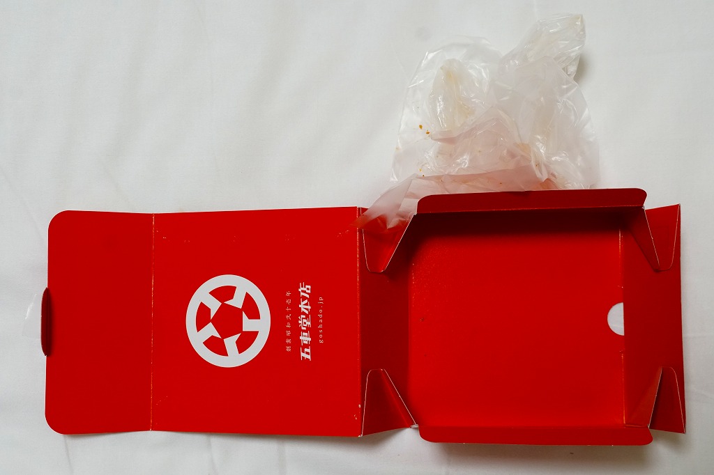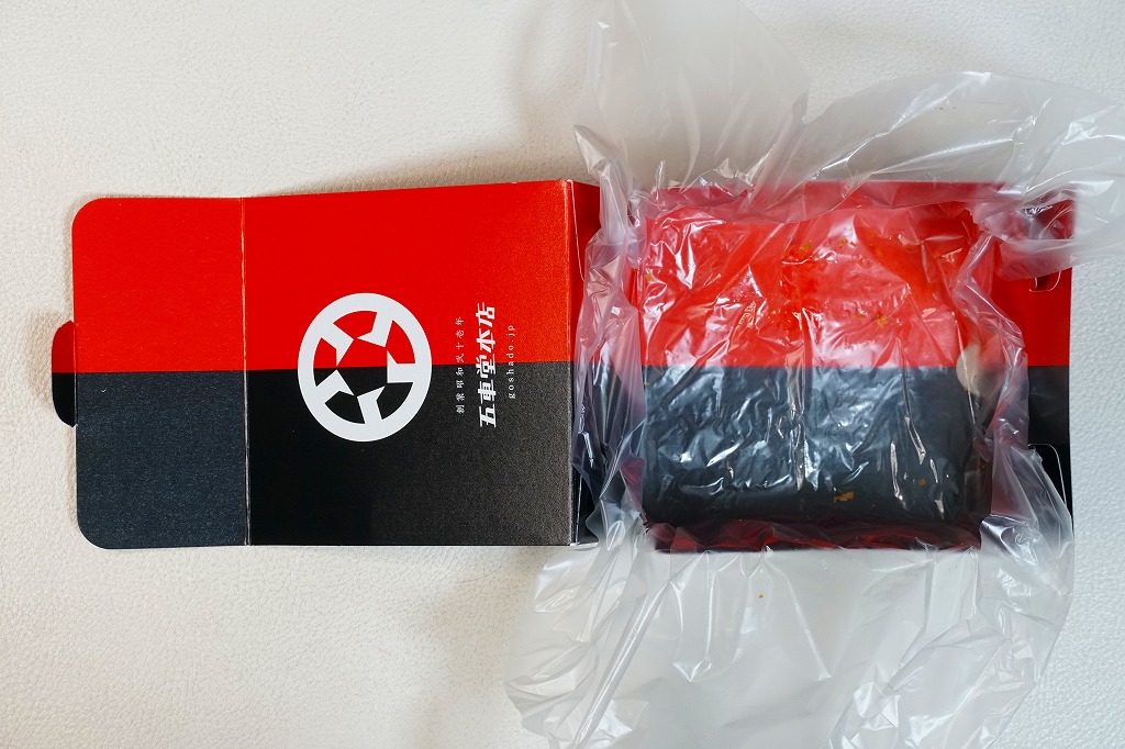 2023年末の熊本駅で初めて見たが、すでに上記の「ヒレヒレ」「ヒレメン」と一緒に発売か。英字で「MINCED MEAT CUTLET SAND」、食品表示で「調理パン(メンチカツサンド)」とある。この赤い紙箱に、メンチカツのソース漬けを耳なし食パンで挟んだカツサンドが2切れ収まる。このソースが、五車堂が創業以来70年以上にわたり大切に作り続けてきた秘伝なんだとか。価格は駅では630円、ネット通販や店舗で買うと540円。