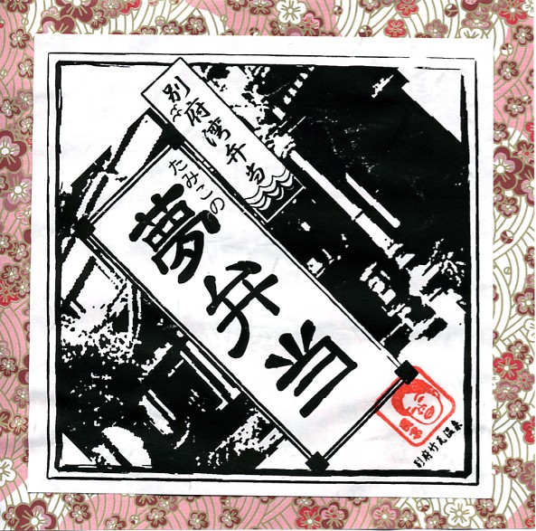 記載事項から1937(昭和12)年のものと思われる、昔の別府駅弁の掛紙。スキャナのせいで色合いが異なるが、上記の掛紙と同じもの。