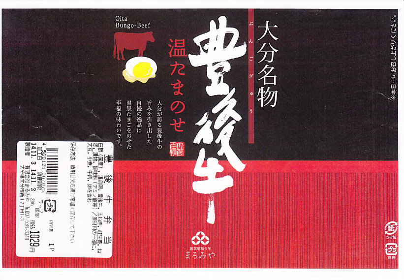 この調製元の弁当が大分駅に置かれ始めた2012(平成24)年前後の発売か。不思議と白飯の半分だけ牛焼肉で覆い、温泉卵を載せ、漬物を添えた牛丼弁当。肉が豊後牛で、ネギやタマネギが適度に混じり、駅弁の名物にはならなかったが、おいしい牛肉弁当だった。収穫報告がまったく聞かれないため、現存を含め詳細は不詳。2016年頃までには駅から撤退したのではないかと思う。