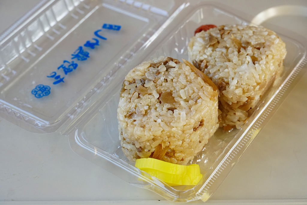 この商品に専用の、透明プラ製の惣菜容器に、鶏飯のおむすびを2個詰めて、たくあんを添える。見た目で全国どこにでもあるただの惣菜に見えて、これは大分の郷土料理。鶏肉とごぼうや人参などを炊きこんだ御飯は、県内の全域で日常や祭事に親しまれてきたという。