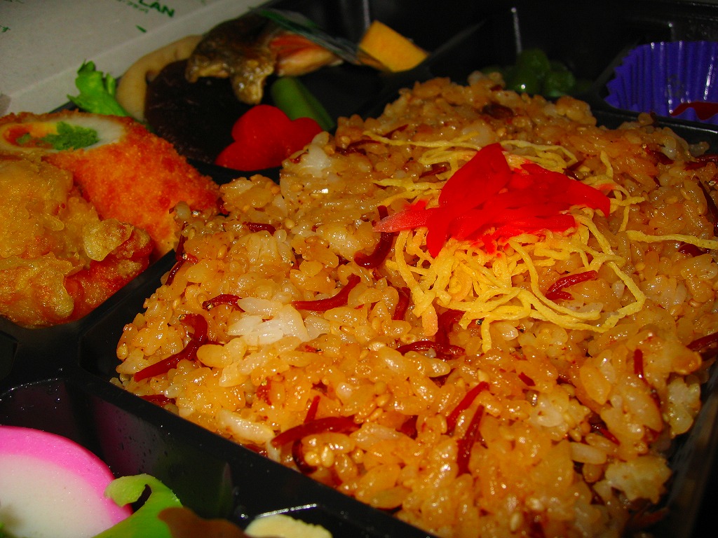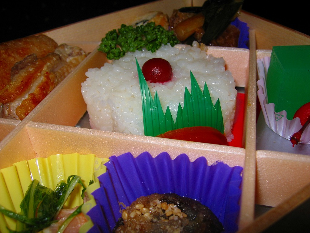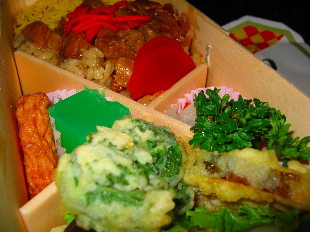 2004(平成16)年度にJR九州が実施した駅弁キャンペーン「第1回「あなたが選ぶ、九州の駅弁ランキング!」」の、創作駅弁メニューを募集する「私の駅弁レシピ」で、最優秀賞を獲得した公募レシピを商品化し、2005(平成17)年4月に発売。折箱の形状は高級弁当向けなのに、桃色の事務用紙に黒文字を印刷した掛紙は簡易的。中身は中央に花形の日の丸御飯、その周辺に鶏ゆずこしょうマヨネーズ炒め、ネギと油揚げすき焼き、椎茸天、かぼすゼリーなど。普通の駅弁や弁当にあまりないような味や形のおかずを楽しめた。2007(平成19)年11月の駅弁業者の撤退により終売となったと思われる。