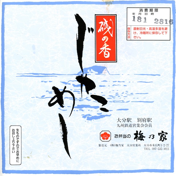大分県が世界に誇る地域おこしキャンペーン「一村一品運動」による各地の特産にちなんだおかずを、さりげなく盛りつけたそうな。そのため内容に脈絡がないように見えて、全部で一食としてまとまった感じで、酒のつまみにもなりそう。磯の香はしてこなかったが、駅弁として優秀な普段着といったところ。2007(平成19)年11月の駅弁業者の撤退により終売となったと思われる。