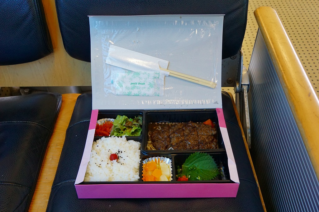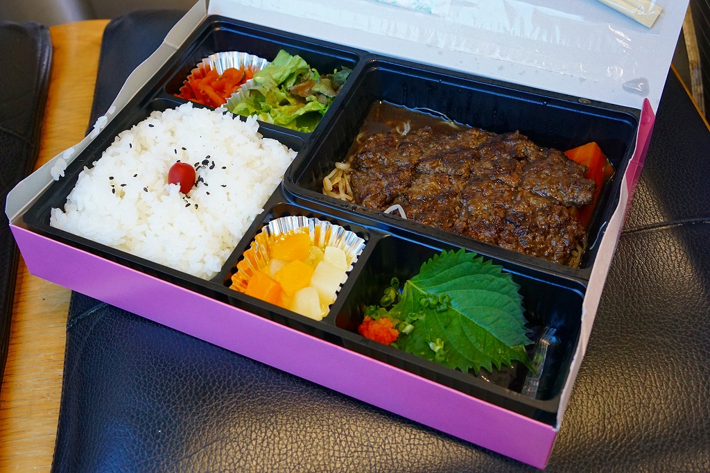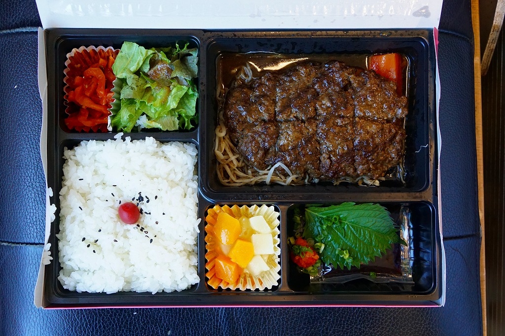 訪問時の店頭では、ハンバーグ150グラム入りで1,080円、200グラムで1,260円、150グラム2枚入りで1,600円、「黒毛和牛サーロインステーキ」1,950円、デミグラスソース・ごはん大盛で各プラス108円、チーズ添え、きのこ添え、味噌汁で各プラス162円という、持ち帰り弁当チェーン店のような注文販売が実施されていた。店が駅や市街から逃げていき、列車や車内で飲食品が得られなくなり、鉄道旅行では飲料自動販売機にさえ出会えないこともある21世紀の日本で、駅でこんな商売が行われていると便利に思う。