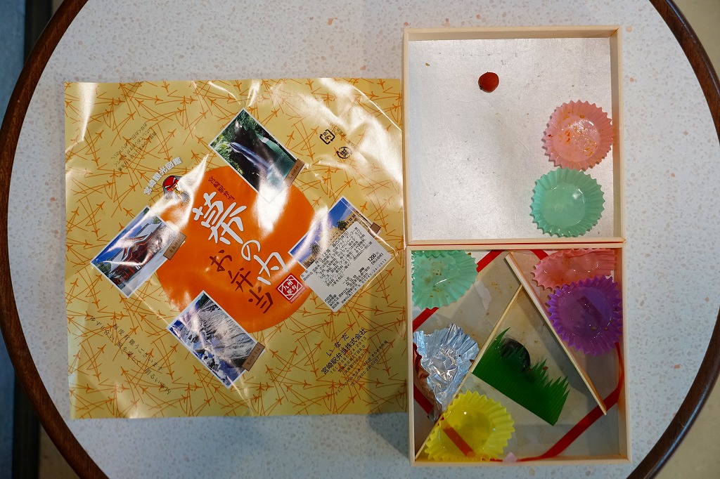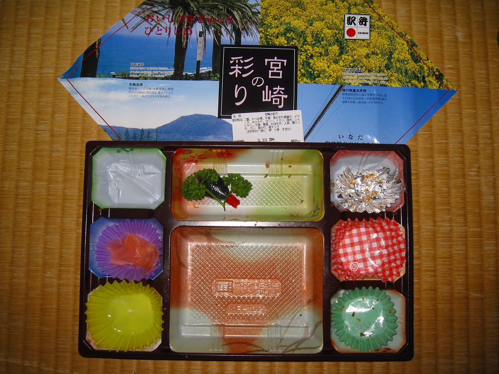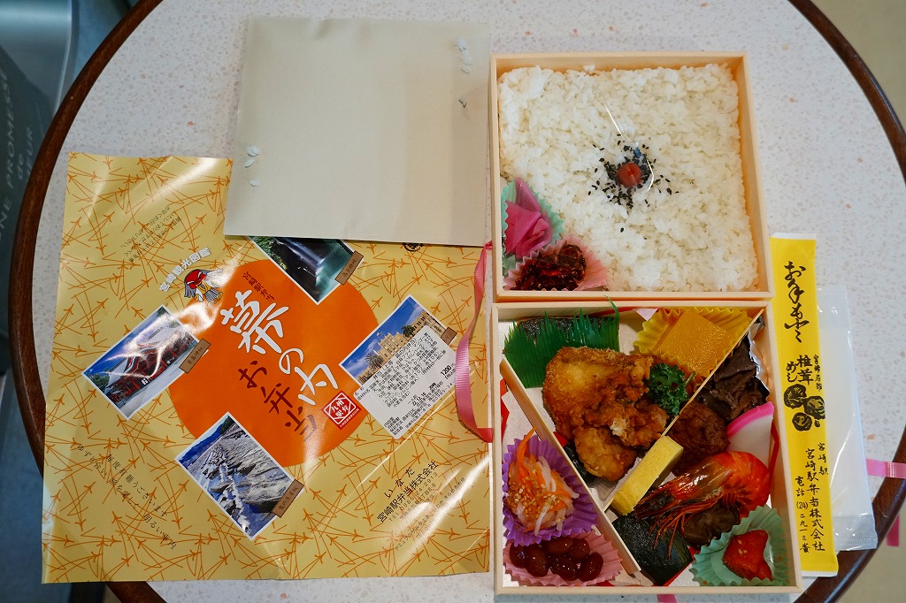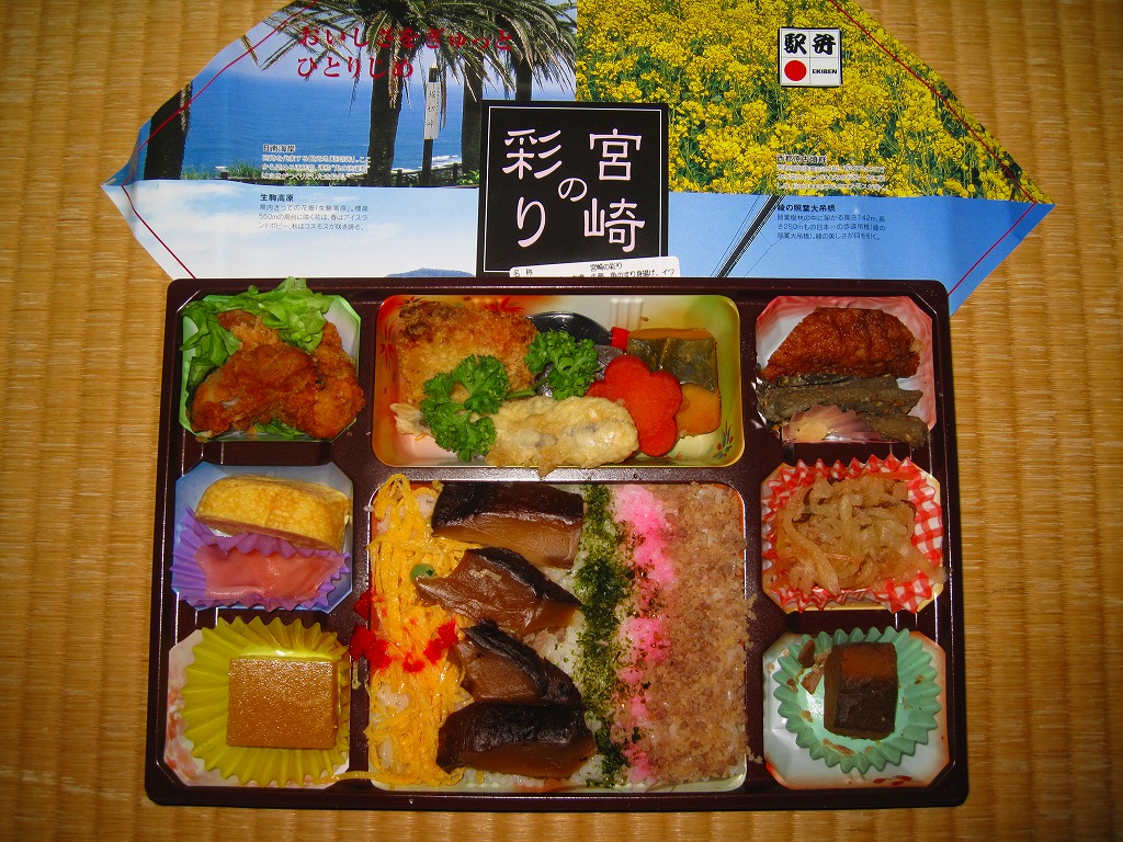 2007年の夏にコンビニエンスストア大手のローソンが中四国地方でタイアップ弁当にするほど宮崎の味が詰まるようで、確かに内容は多種。一方で、何が言いたいのか分からない弁当であるようにも見える。価格は2011年の購入時で850円、2014年時点で900円、2023年時点で1,100円、2025年11月から1,500円。