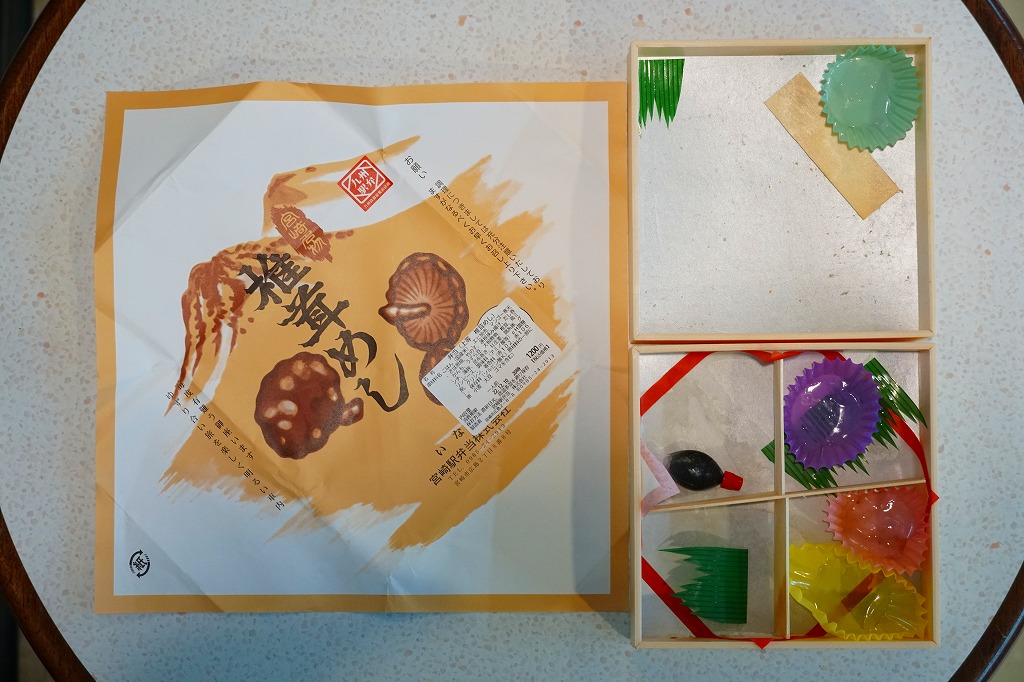 上等を名乗るこの分量と内容で、値段は駅弁の平均価格以下とお買い得。昭和の落ち着きと見た目を持つ折詰であり、同じ名前と内容で、並等と上等が両立するのも、20世紀の駅弁の姿。価格は2003年時点で820円、2005年時点で920円、2014年時点で970円、2020年時点で1,000円、2023年時点で1,200円、2025年11月から1,300円。椎茸は宮崎の特産。2020年の都道府県別生産量で宮崎県は、乾しいたけは大分県に次ぐ2位で、生しいたけは7位、合計では大分県と徳島県との三つ巴と紹介される。