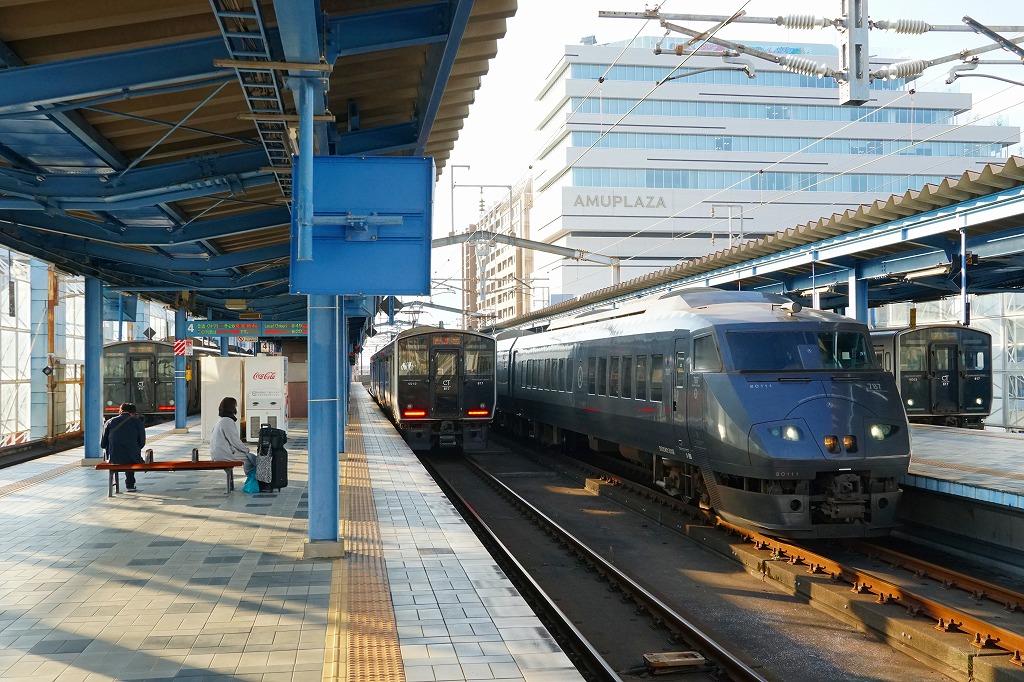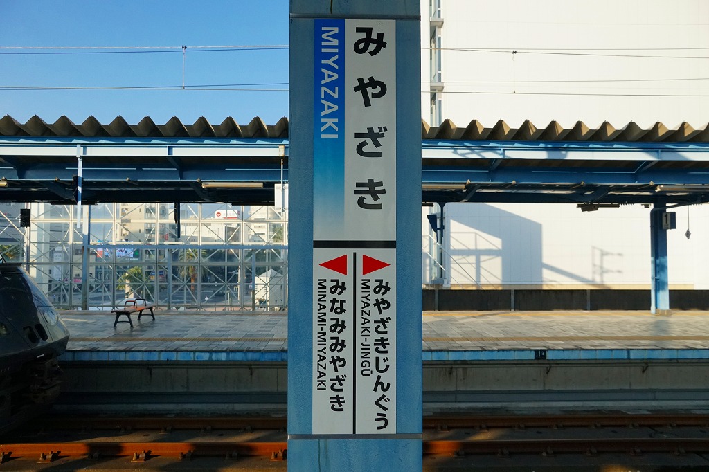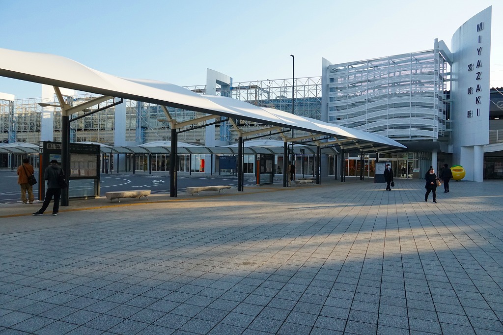 鹿児島中央駅から特急列車で約2時間。宮崎市は宮崎県で日向灘に面して大淀川の河口に位置する、人口約40万人の商業都市で県庁所在地。温暖な気候を、農作物の早期・促成栽培やスポーツチームのキャンプ地などに活かす。駅弁は1913(大正2)年の駅の開業時からあり、1942(昭和17)年に業者が交代、現在は改札外の駅弁売店で買える。1913(大正2)年12月15日開業、宮崎県宮崎市錦町。