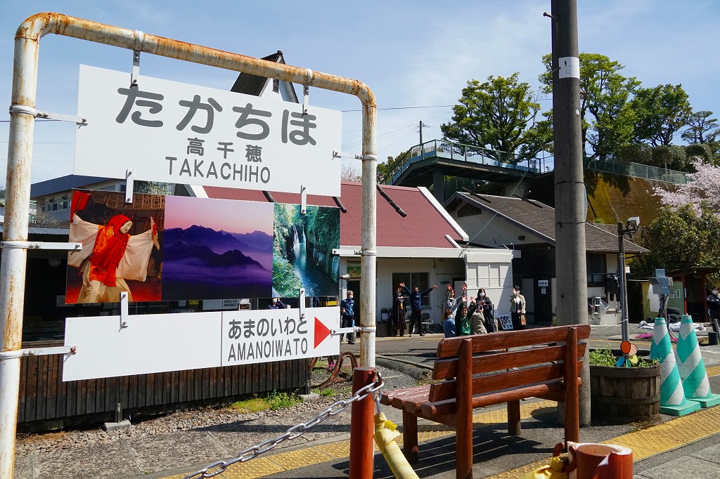 高千穂町は、宮崎県の北端で九州山地の中に位置する、人口約1万人の門前町(鳥居前町)。日本の神話で天孫降臨の地とされる、有史以前からの伝承に基づく観光地。大正時代までに熊本と延岡を結ぶ鉄道が計画され、1972(昭和47)年7月に高千穂へ達したが、全通することなく豪雨災害で2005(平成17)年9月に不通となり、そのまま廃止された。廃線跡の一部で2010(平成22)年4月からカートが運行され、高千穂駅の駅舎や構内が使用される。駅弁は2003(平成15)年10月にトロッコ列車の乗客向けに発売されたが、鉄道の休廃止とともに消えた。1972(昭和47)年7月22日開業、2008(平成20)年12月28日廃止、宮崎県西臼杵郡高千穂町大字三田井。