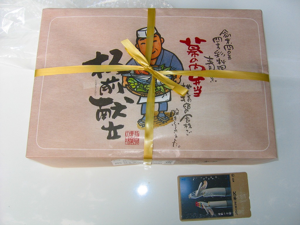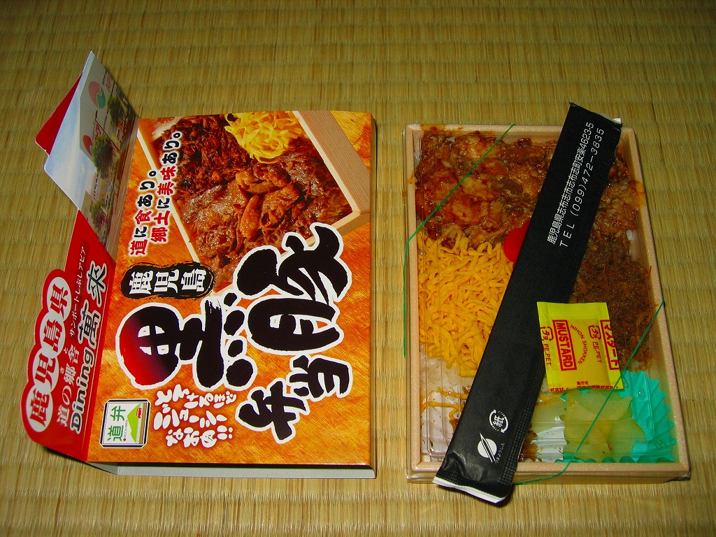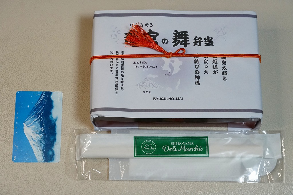 小箱に小粒な料理の詰合せはきっと、玉手箱をイメージしたのだろう。その激しく揺れる列車内で食べることにも、向いているかもしれない。調製元は鹿児島中央駅の駅弁売り場にも弁当を卸すスーパーマーケットチェーン店。今回は阪神百貨店の駅弁大会で購入。現地で買うにはとても手間のかかる商品だからかどうか、整理券の入手と実物の入荷にそれぞれ何時間も待たなければならない、大変な人気で購入が困難な商品だった。