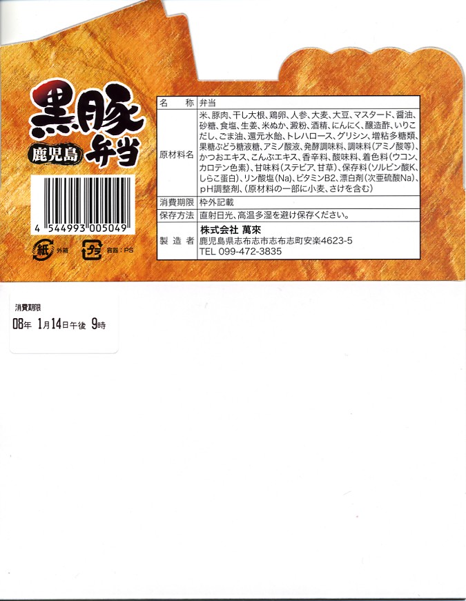 2007年の秋までに投入された「道弁」なる駅弁催事向け商品のひとつ。長方形の小さな容器を、スーパーやデパートの売り場での見栄えを重視した構造だと思える、立ち上がり付きのボール紙の枠にはめる。中身は白御飯の上に豚佃煮、豚ばら肉、錦糸卵を乗せるもの。それぞれの見栄えや風味に業務用食材の工業製品感がある、パッケージ入りコンビニ弁当。来シーズンの催事場にあるかどうか。