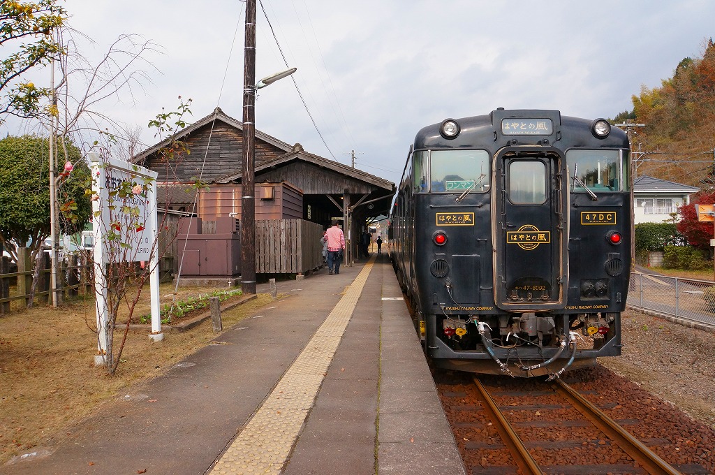 大隅横川駅もまた嘉例川駅と同じく、九州最古の木造駅舎を持つ無人駅。第二次大戦中の機銃掃射の痕跡がホーム上屋に残ることでも知られる。しかし2004年3月の観光特急「はやとの風」とともに観光地として花開いた嘉例川駅と違い、こちらは何もなく、何もせず、静かなままだった。それではまずいと考えたのだろうか、10年経った訪問当日の駅では嘉例川駅以上にスタッフと商品が駅に入り、駅前では門松を立てていた。なお、両駅は2005年11月の合併により、今は同じ霧島市内にある。