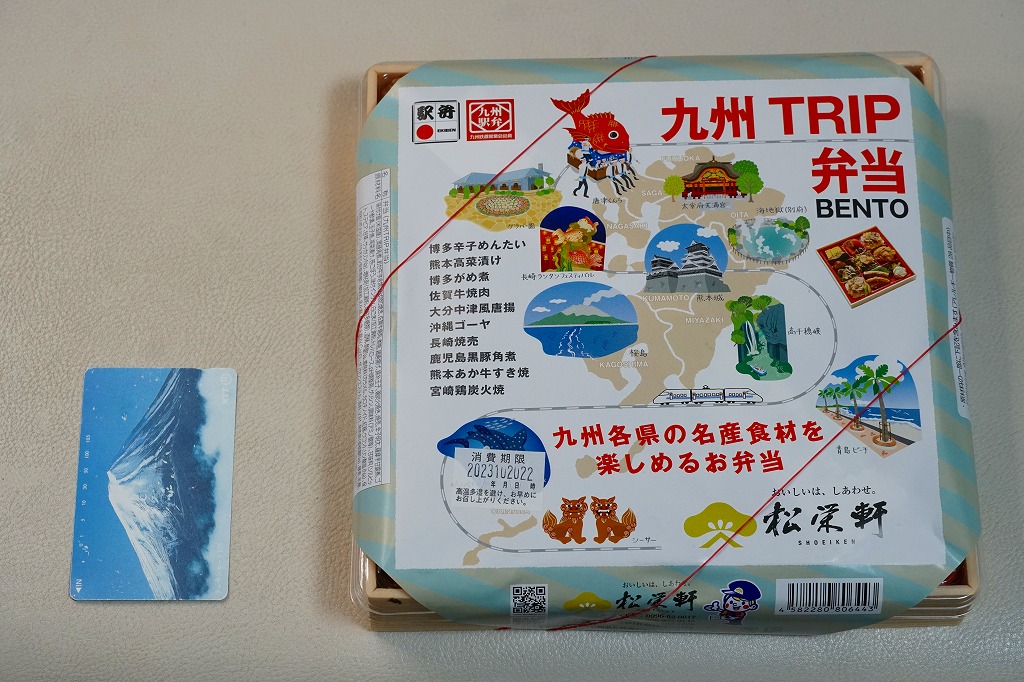 どうも2023(令和5)年10月に東京駅で発売し、鹿児島中央駅の駅弁を名乗りJR東日本の駅弁キャンペーン「駅弁味の陣2023」にエントリーした模様。既存の博多駅弁「KYUSHUTRIP弁当」と、名前と実質的な調製元と9区画のトレーの形が同じだが、リニューアルでなく博多と東京でそれぞれ売られ、中身と容器と価格が異なる。JR東日本の駅のコンビニ「ニューデイズ」各店へ出荷された日もあり、どうもこちらは催事向け商品か。