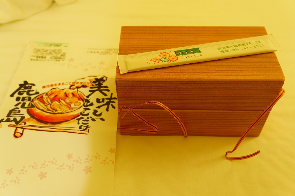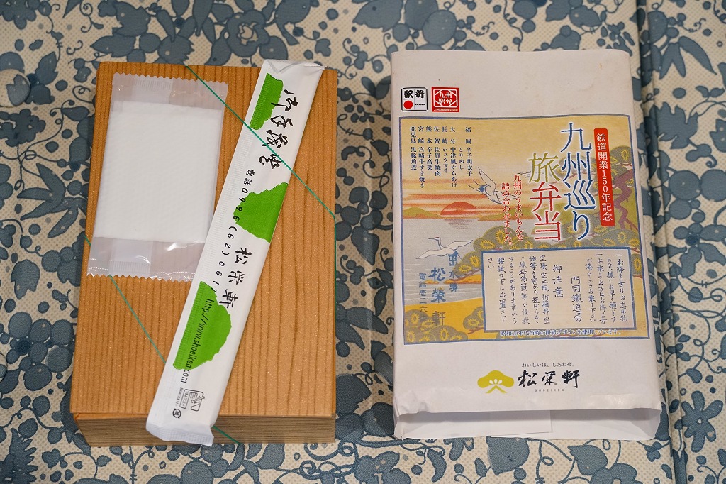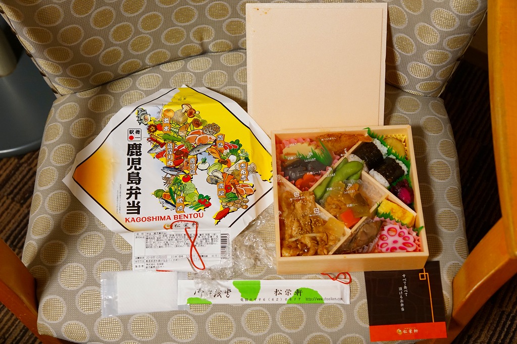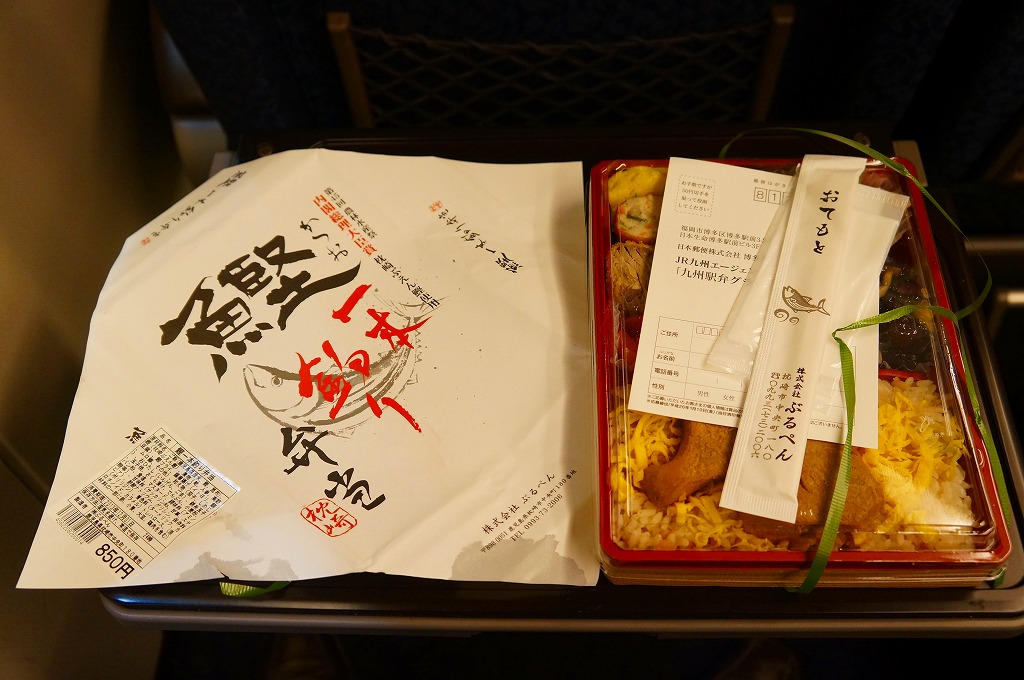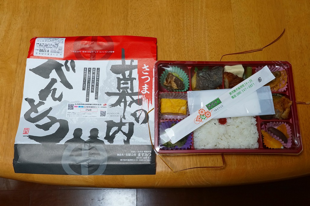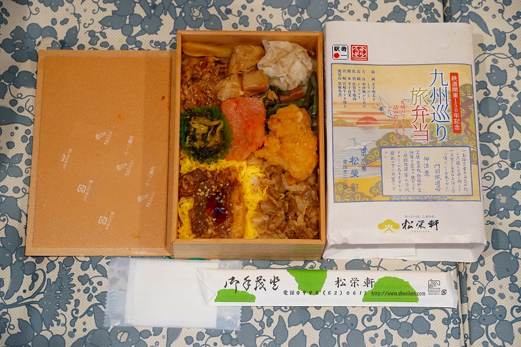 九州新幹線全線開業記念駅弁22種のひとつとして、2011(平成23)年2月1日から8月31日まで販売、その後も販売を続けた。小箱を2段に重ねた容器の中身は、下段が日の丸御飯に笹団子、上段が骨付きの豪快なとんこつ、ガネ、薩摩揚、有頭海老、たっぷりのキビナゴ揚げ、煮玉子など。これも同じ日に食べた上記の駅弁「黒豚チャーシュー弁当」と同じく、味は見た目よりだいぶあっさりしており、昼食でも夕食でも夜食でも大丈夫な感じ。価格を考えても、お得な駅弁。価格は2013年の購入時で840円、2014年4月の消費税率改定で864円。2016年以前に終売か。