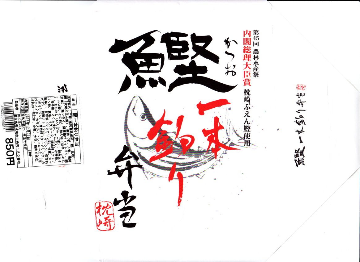 2008(平成20)年の発売か。同年度のJR九州の駅弁キャンペーン「九州の駅弁 あなたが選ぶ駅弁ランキング2008」で第4位を獲得。掛紙の「第45回農林水産祭内閣総理大臣賞」というのは、2006(平成18)年度の第45回農林水産祭において枕崎市漁業協同組合が産物(水産加工品)「枕崎ぶえん鰹」で内閣総理大臣賞を得たものであり、この弁当が受賞したわけではない。