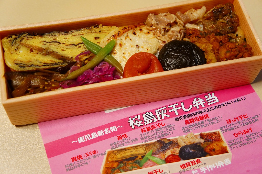 2012(平成24)年までに鹿児島中央駅で発売か。小さな梅干しの日の丸御飯を中央に据え、その周囲をゴーヤー、玉子焼、とんこつ、カレイ白醤油焼、さつま揚げと高野豆腐などの煮物、きびなご南蛮とれんこん揚げ、肉団子とカボチャ揚げ、漬物と紫芋などのおかず8区画で囲む。幕の内弁当を名乗り、幕の内タイプの構成ながら、鹿児島や薩摩がたっぷり詰められていた。2022年までに終売か。