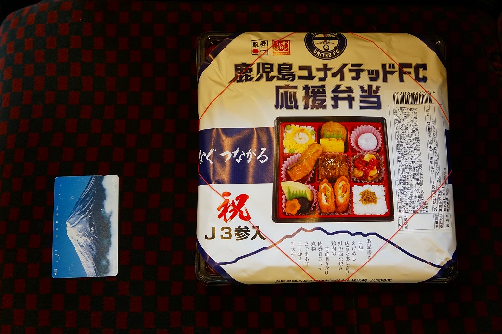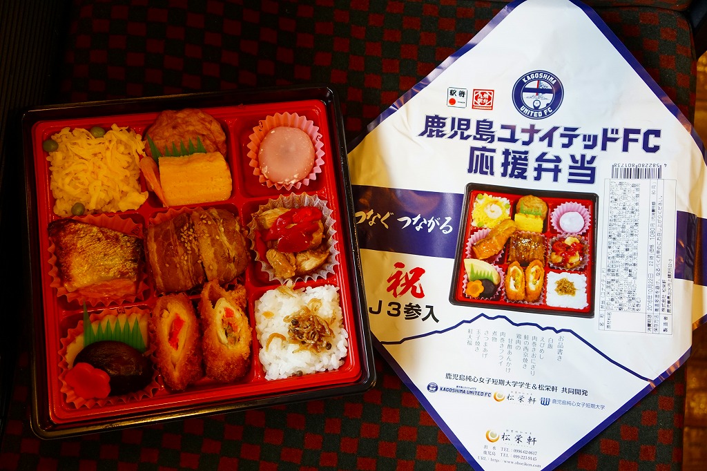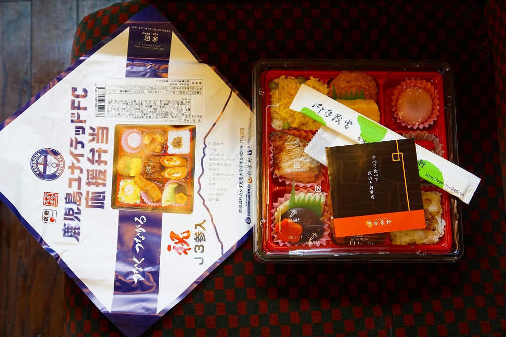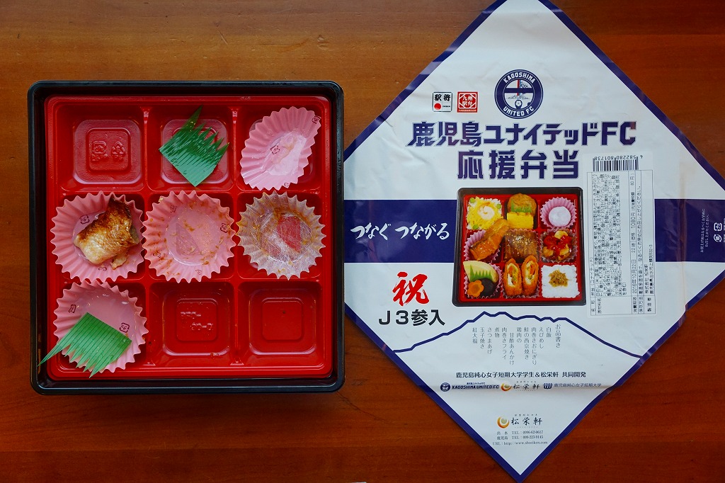 鹿児島ユナイテッドFCは、2013(平成25)年12月の設立。サッカーJリーグのチームがなかった鹿児島に、1959年からの歴史を持つヴォルカ鹿児島と、1994年からの歴史を持つFC KAGOSHIMAというふたつのチームが立ち上がって競合し、Jリーグからクラブの一本化を求められたため、事実上合併して発足した。だから「ユナイテッド」であり、離島の協力や県外の団結の意味も込めてクラブ名としたという。駅弁が出た年は16チーム中5位の成績となった。