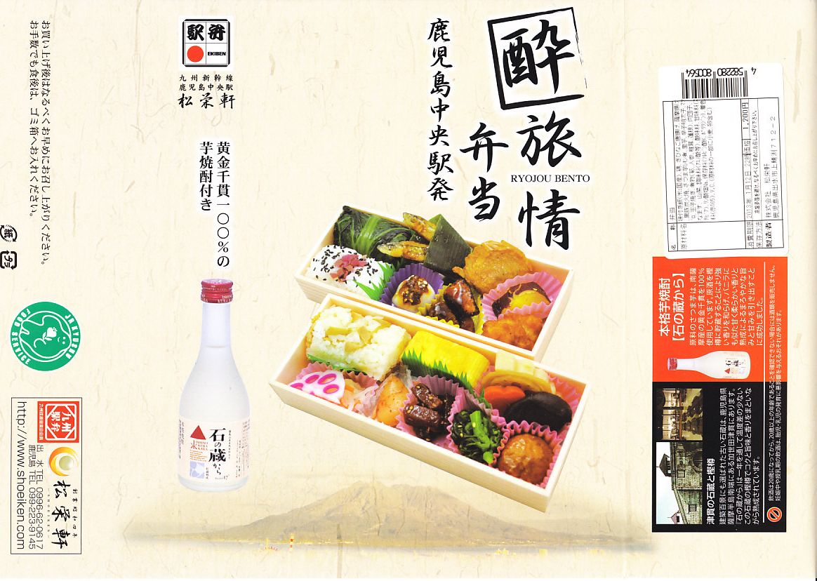 九州新幹線(鹿児島ルート)の全線開業1周年を記念して、2012(平成24)年3月1日に発売。中身は掛紙の写真のとおり、半分が芋焼酎「石の蔵から」、半分の上下段で俵飯3種、キビナゴ甘酢あんかけ、黒豚炭火焼、さつま揚げ、鶏唐揚、芋レモン煮、玉子焼、ダイコンなます、マグロ角煮、ミートボール、根菜の煮物、辛子明太子など。