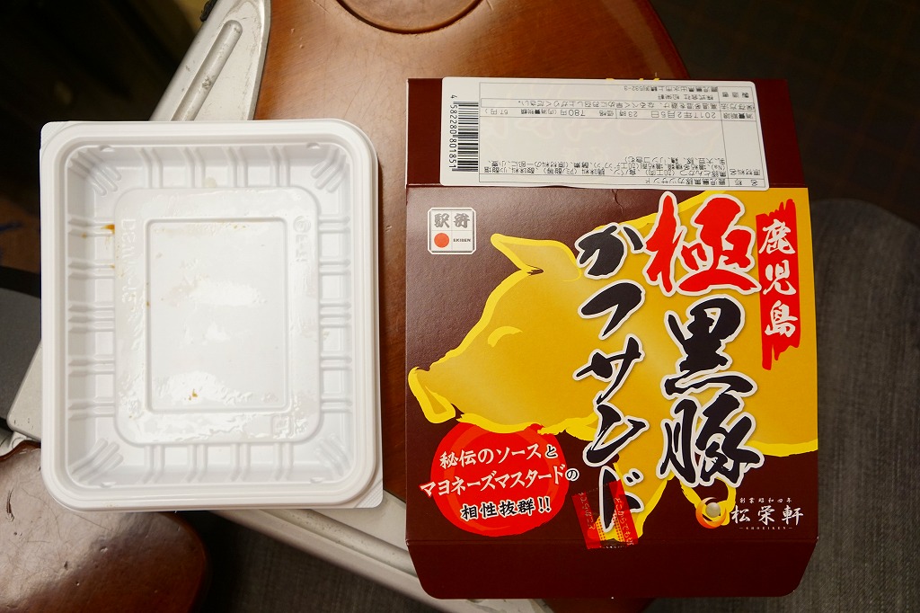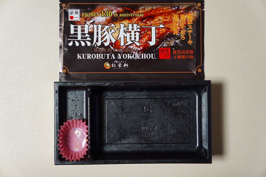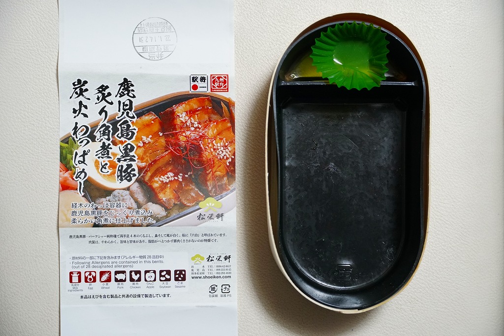 この内容へのリニューアルは、2015年の出来事か、今回の東京駅に限ったことか。こんな豚肉駅弁は東京駅にないので、選ばれやすいと思う。ただし、掛紙の強い絵柄も含め、上品ではない見た目ときつい味は、南九州の旅でこそ味わえるのではないかとは思った。その翌年に同じ名前で中身が異なる駅弁が出現したことから、これは売られなくなったと思われる。