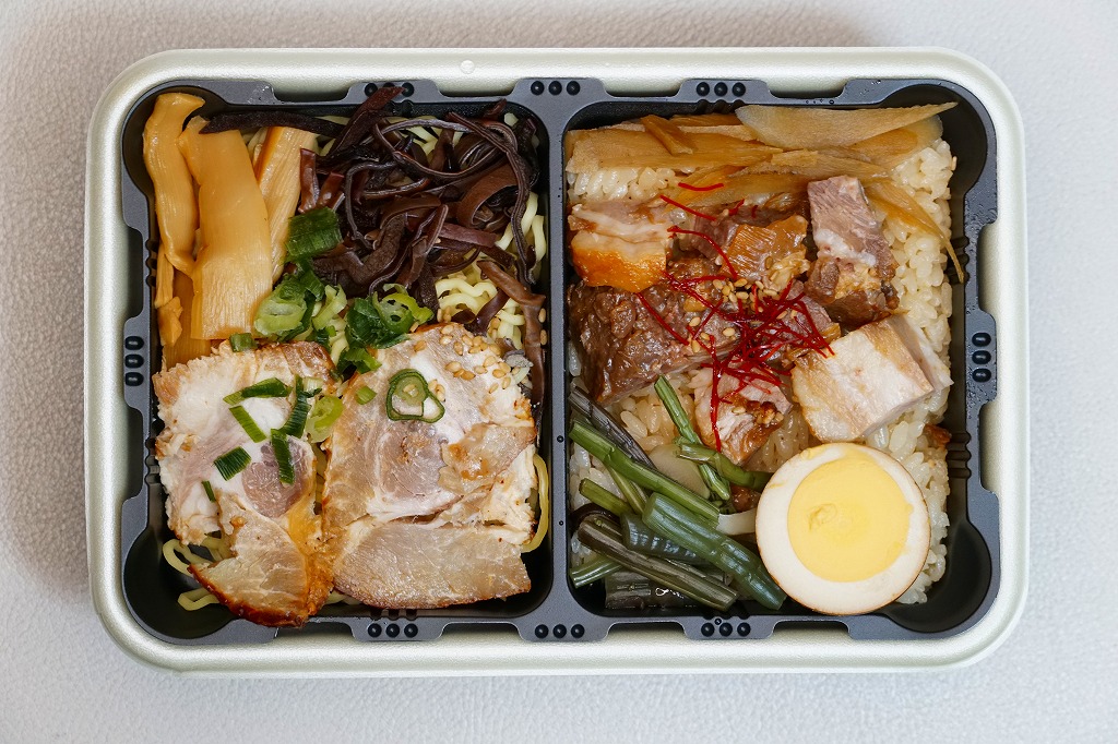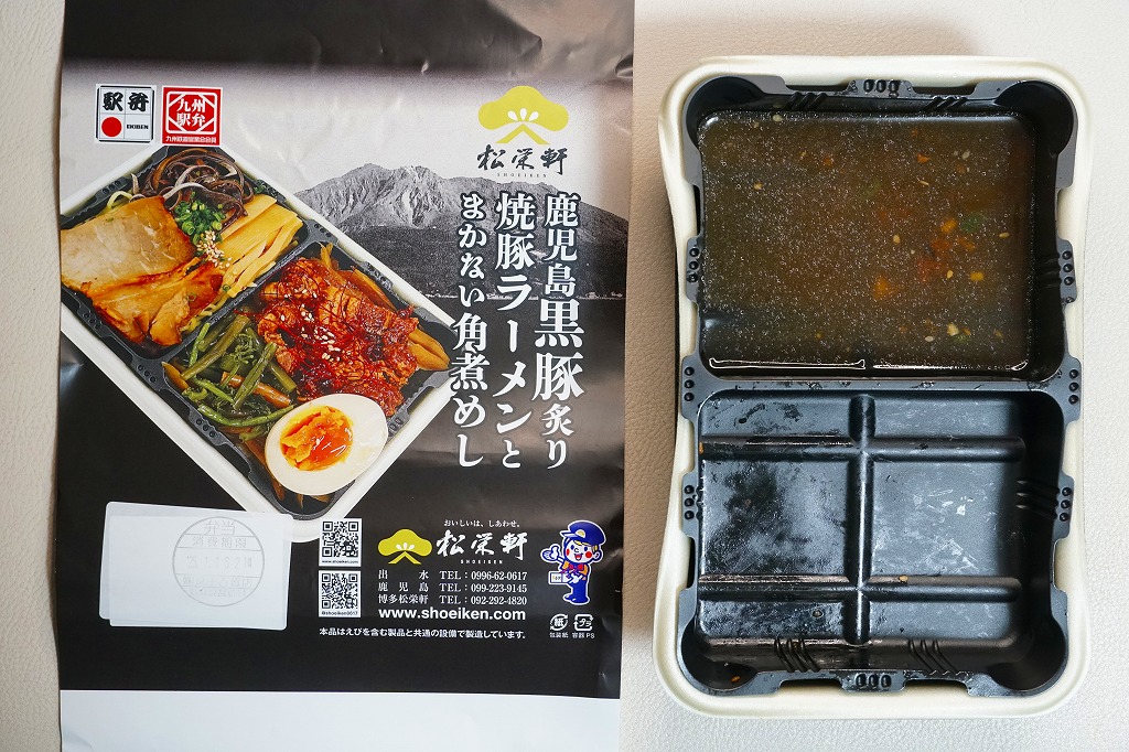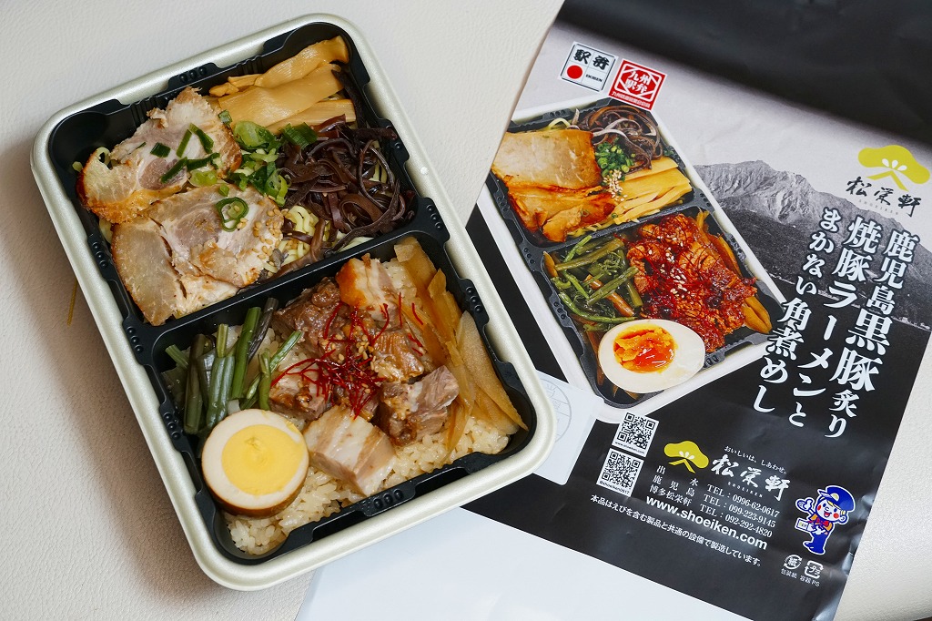 2025(令和6)年1月の京王百貨店の駅弁大会で、出水駅の駅弁として実演販売。今回の催事場で水戸駅「常陸牛牛べんとあんこう味噌ラーメン弁当」と新千歳空港駅「駅めん吉山商店×美食千歳」との「よくばりコラボ!駅弁×ご当地ラーメン」企画を担った。商品名と桜島と中身の写真を使う黒い掛紙を巻いた、長方形の加熱機能付き容器に、ラーメンを詰めてチャーシューに思える炙り焼豚とメンマとキクラゲで覆いネギを載せ、茶飯を詰めて黒豚角煮や煮卵と山菜やごぼうで覆う。ラーメンのスープを添付。駅弁にしてよかったためしがないと思うラーメンと、いつもの鹿児島中央駅弁の味の詰合せ。調製元のインスタグラムによると、出水駅前の本社工場で2月7日から前日までの予約販売を始めたというが、買った食べたという話は聞かれない。調製元の公式サイトにも載ってない。