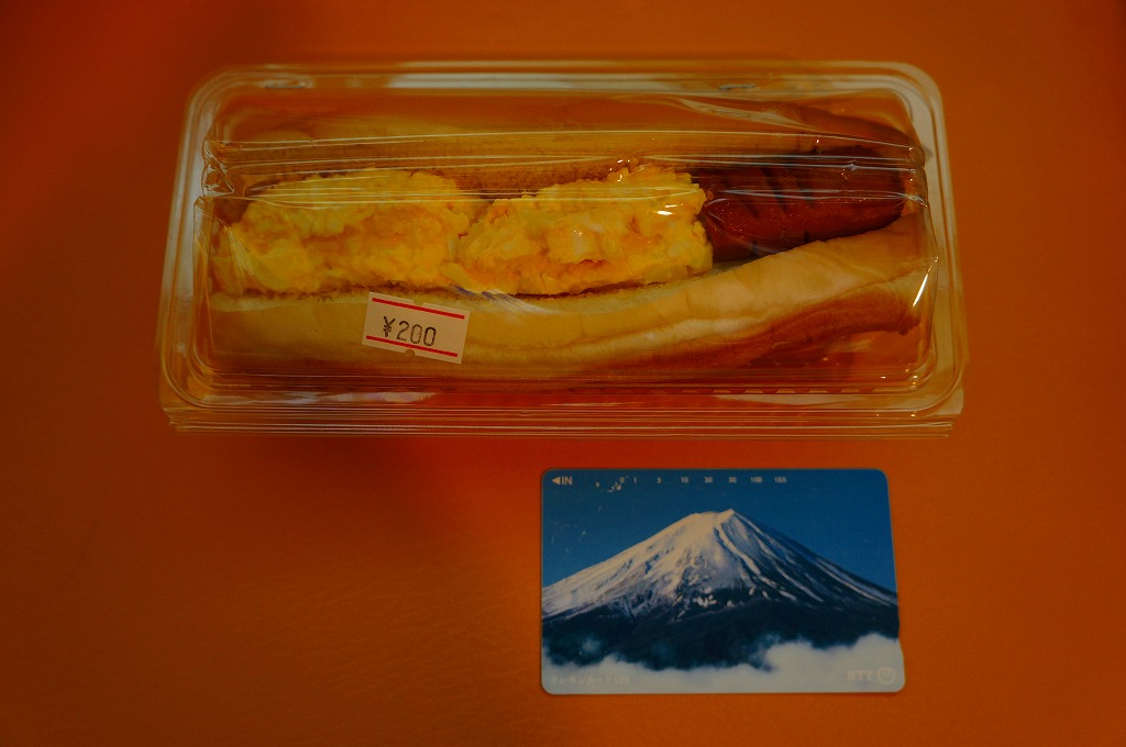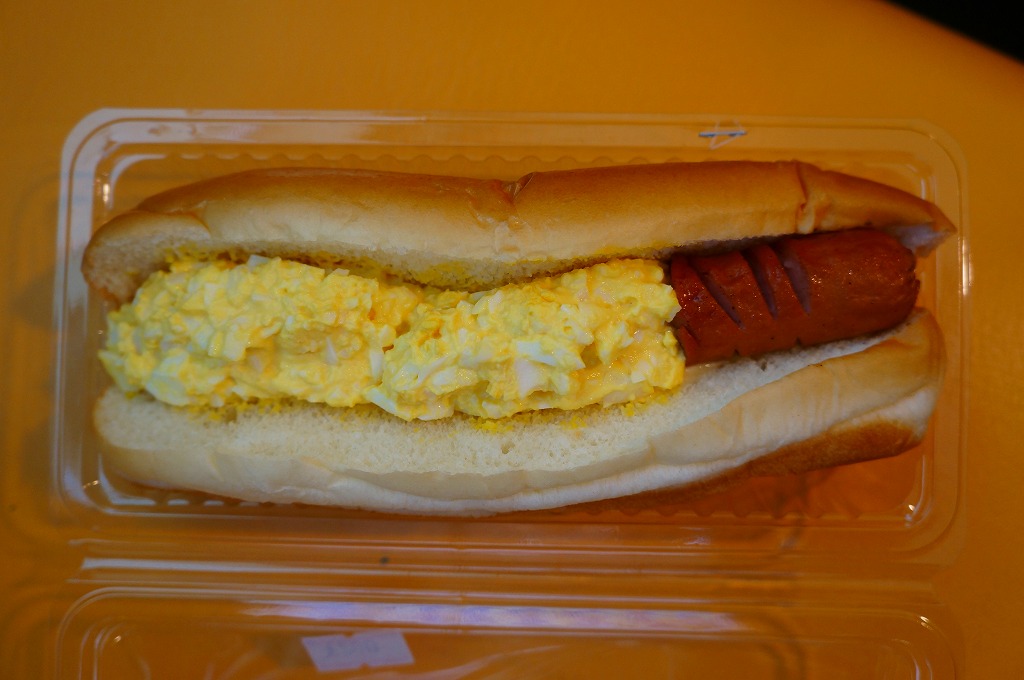 これは駅弁ではなく、伊江島と沖縄本島の本部を結ぶ村営フェリーの売店で販売されていた惣菜のひとつで、コッペパンにゆで卵のペーストと焼ウインナーを挟んだもの。