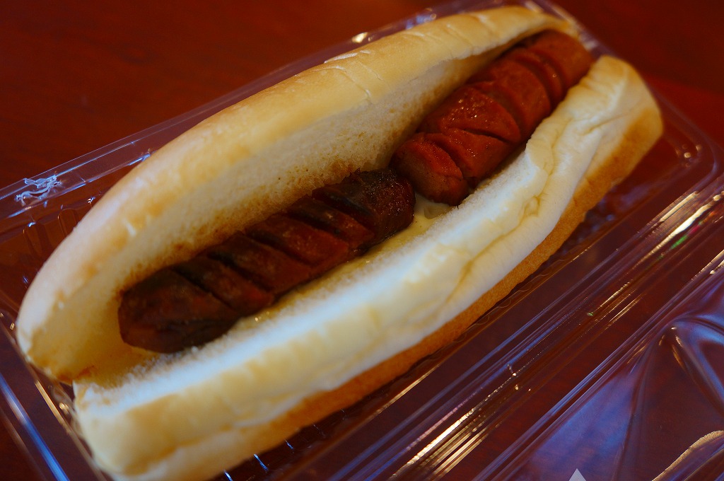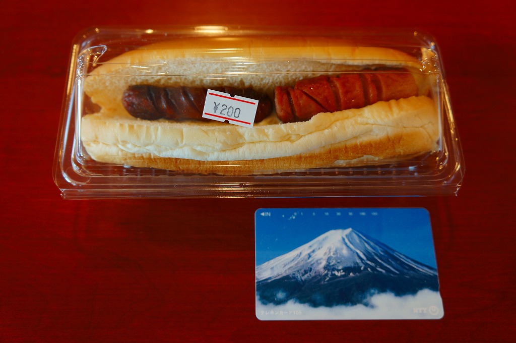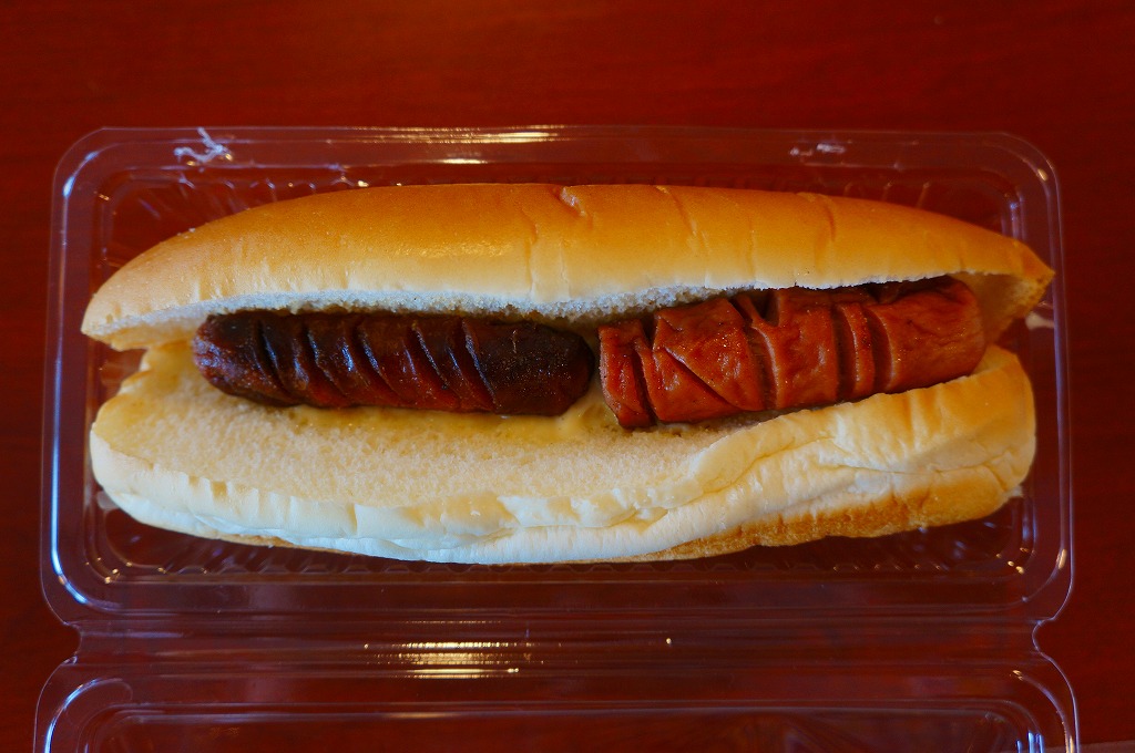 これは駅弁ではなく、伊江島と沖縄本島の本部を結ぶ村営フェリーの売店で販売されていた惣菜のひとつで、コッペパンに2種類各1個の焼ウインナーを挟んだもの。このメニューはさすがに不健康だなと感じたが、ここで販売されていた以上全4種の軽食の見栄えは、他の沖縄の那覇を除く本島や離島での空港や地元商店や船乗り場で販売されていた、油漬けでメタボ一直線な惣菜群より、はるかに健康的なものに見えた。