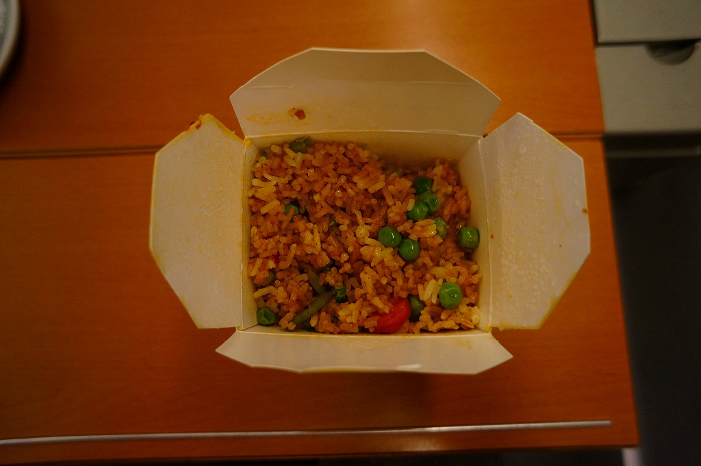 ニュルンベルク中央駅の食品売り場で量り売りされていた惣菜。中身は炒飯。欧州で買ったので洋風な気がするし、米が長粒種であることを除けば日本と同じ風味を持つ気もした。もっとも、ここはジュースやサラダやサンドイッチのお店であり、飯のメニューはこれくらい。調製元はドイツならばどこにでもある惣菜チェーン店であるらしい。