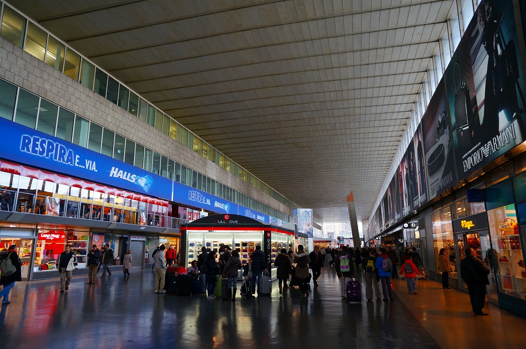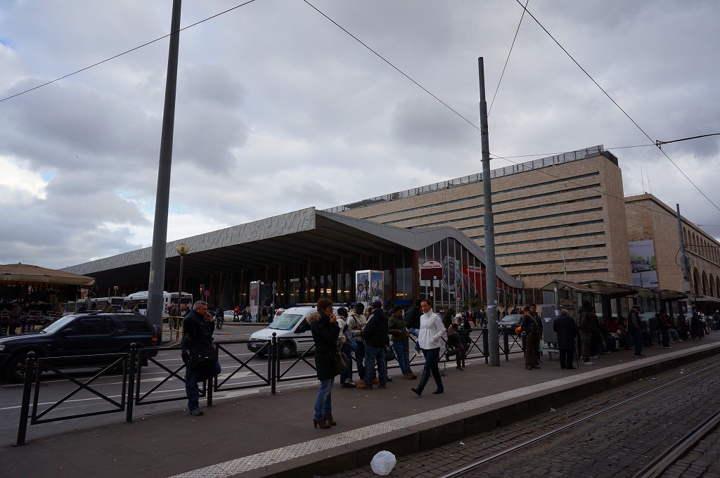 イタリアの首都の中央駅。国際列車や国内特急に近郊電車まで、様々な列車が一日中発着する賑やかな駅である。スリが横行する治安最悪の駅だと多くの日本語ガイドブックに記されるが、2000年以降はかなり改善したらしい。駅名は古代ローマ帝国の公共浴場(テルメ)の遺跡に近いことから名付けられたという。過去には駅弁のような機能を持つランチボックスが売られていたというが、今はない模様。1862年開業。