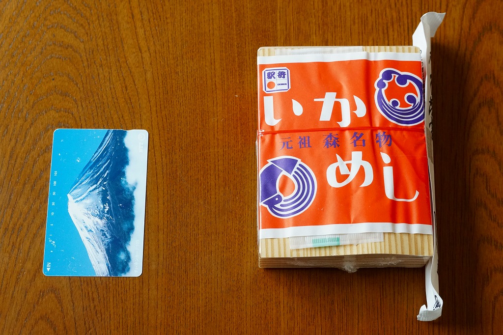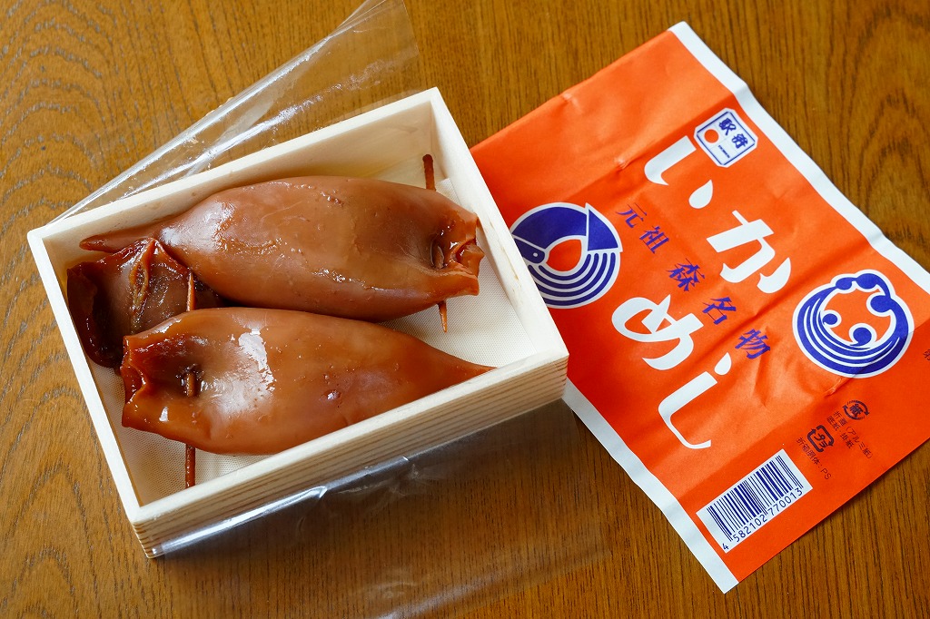 1966(昭和41)年の発売。函館駅で定番の駅弁。長方形の経木枠の容器に木目柄のボール紙でふたをして、ニシンの漢字を大きく描いた掛紙をかけて、ひもで十字にしばる。中身は白御飯の上をニシン甘露煮と味付けカズノコで覆い、茎わかめと大根味噌漬を添えるもの。時の洗礼を受けた味わいには、古典の安心感がある。道南の箱館(現在の函館)・松前・江差はかつて蝦夷三湊と呼ばれ、ニシン漁で大いに栄えた。
