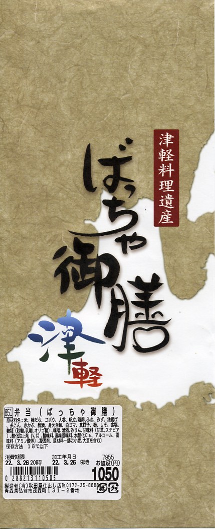 2009(平成21)年2月に地元の「津軽料理遺産プロジェクト」で開発され、ゴールデンウィーク期間中の試験販売を経て内容を見直しのうえ、弘前駅の新駅舎開業5周年記念行事に合わせて同年12月12日から弘前駅2階自由通路での販売が開始された駅弁。